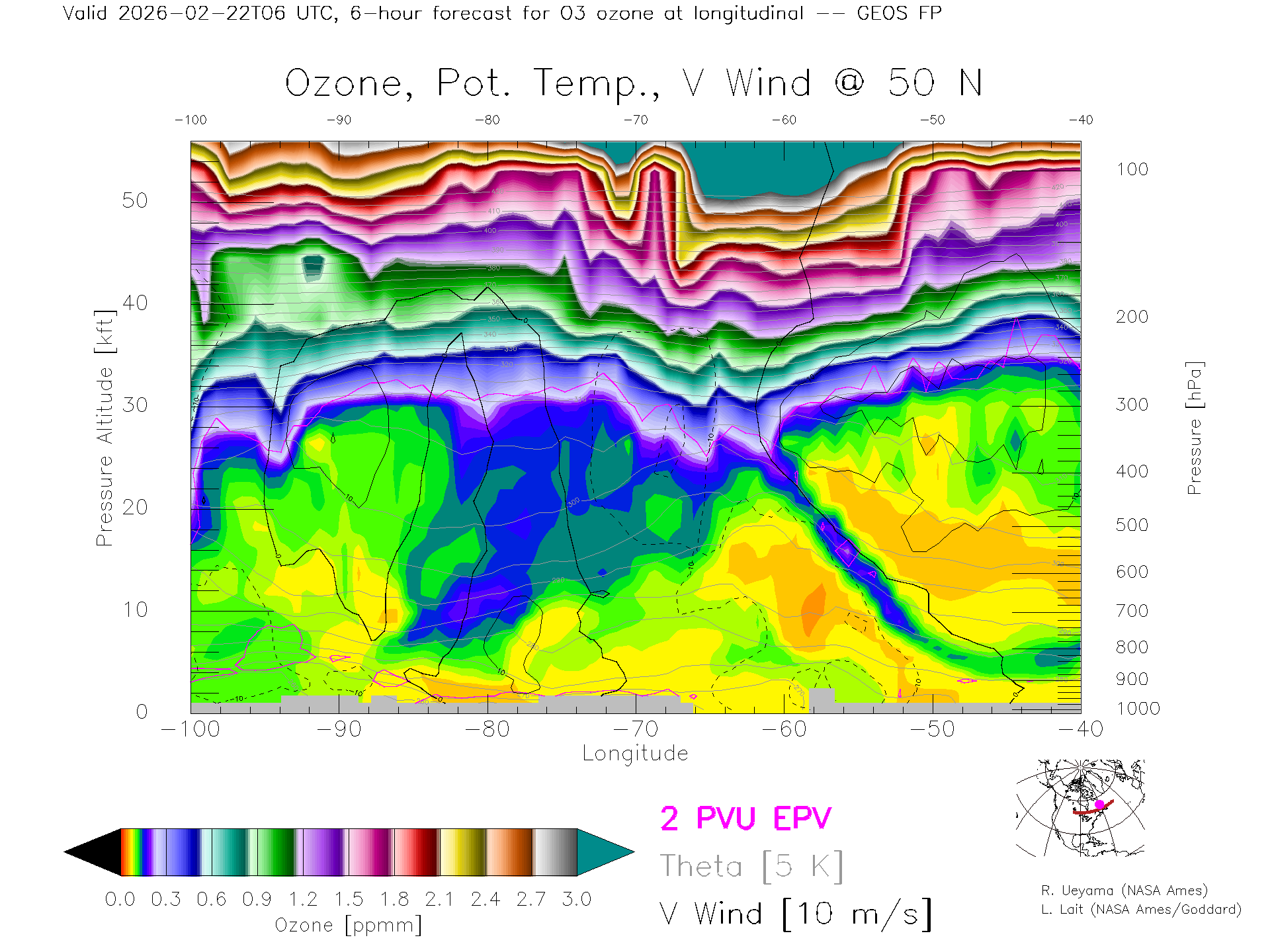 GEOS Forecast Ozone X-Section (50 N)