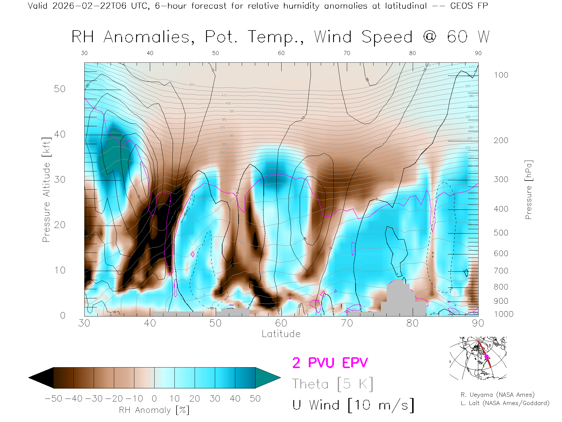 GEOS Forecast Rel. Hum. X-Section (60 W)