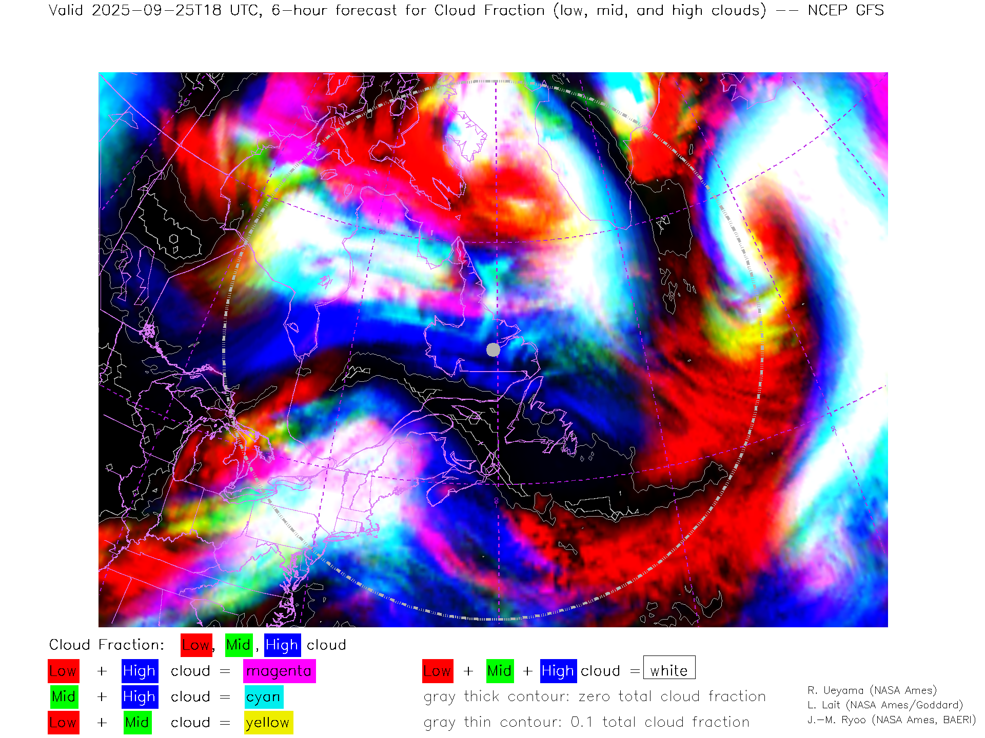 NCEP GFS Forecast Low-, Mid- and High-level Cloud Fraction