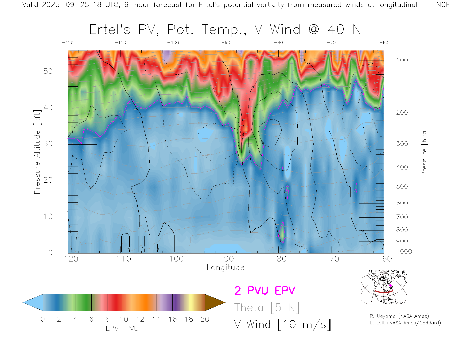 NCEP GFS Forecast PV X-Section (40 N)