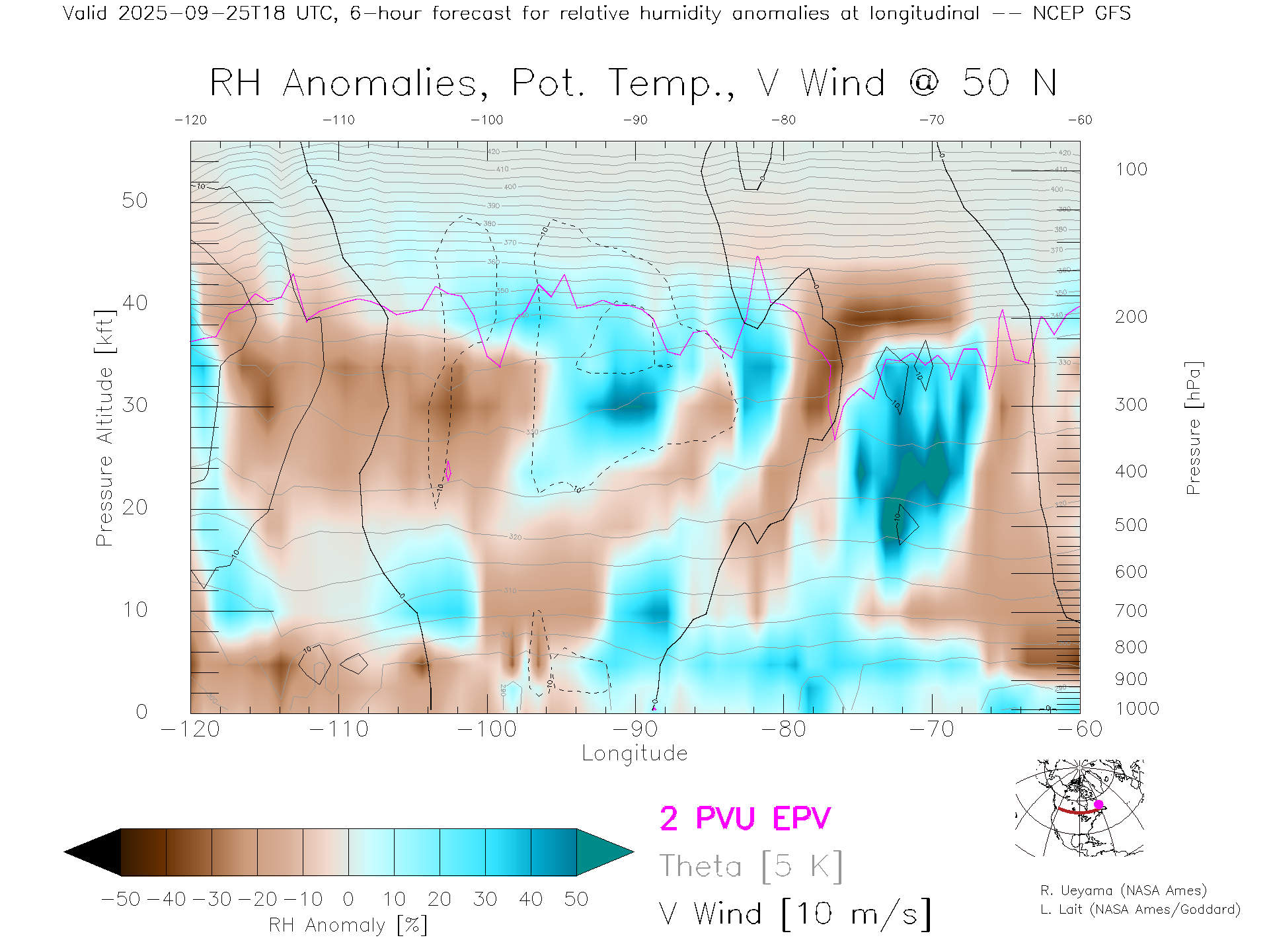 NCEP GFS Forecast Rel. Hum. X-Section (50 N)