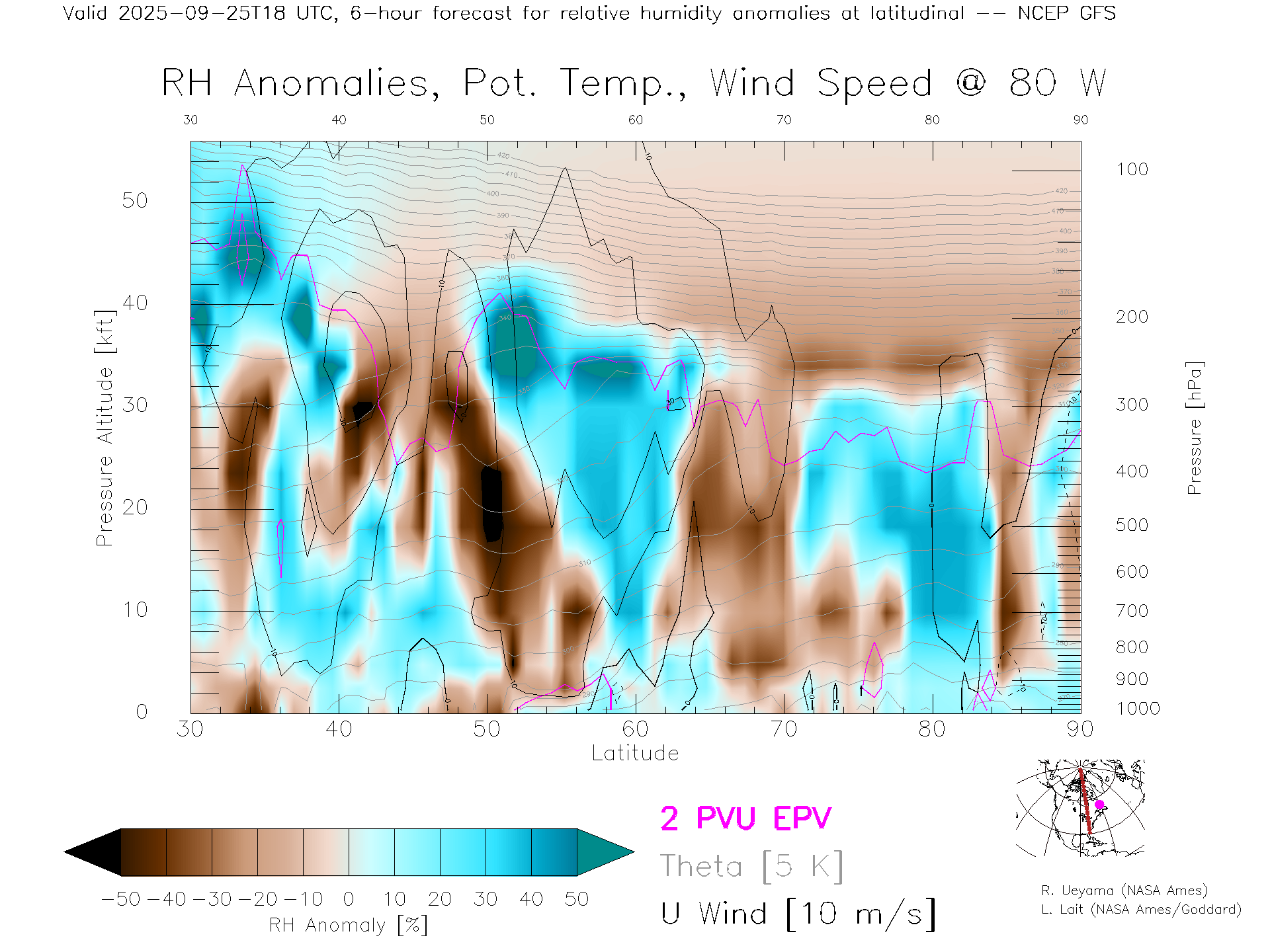 NCEP GFS Forecast Rel. Hum. X-Section (80 W)