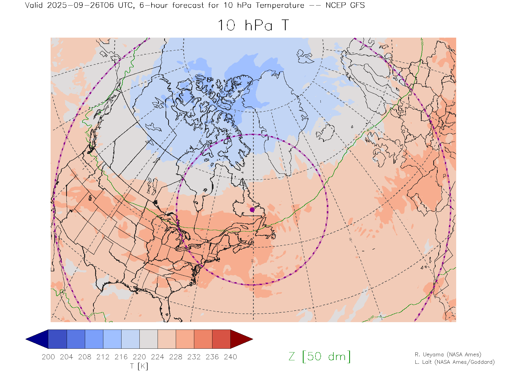 NCEP GFS Forecast 10 hPa Temp.