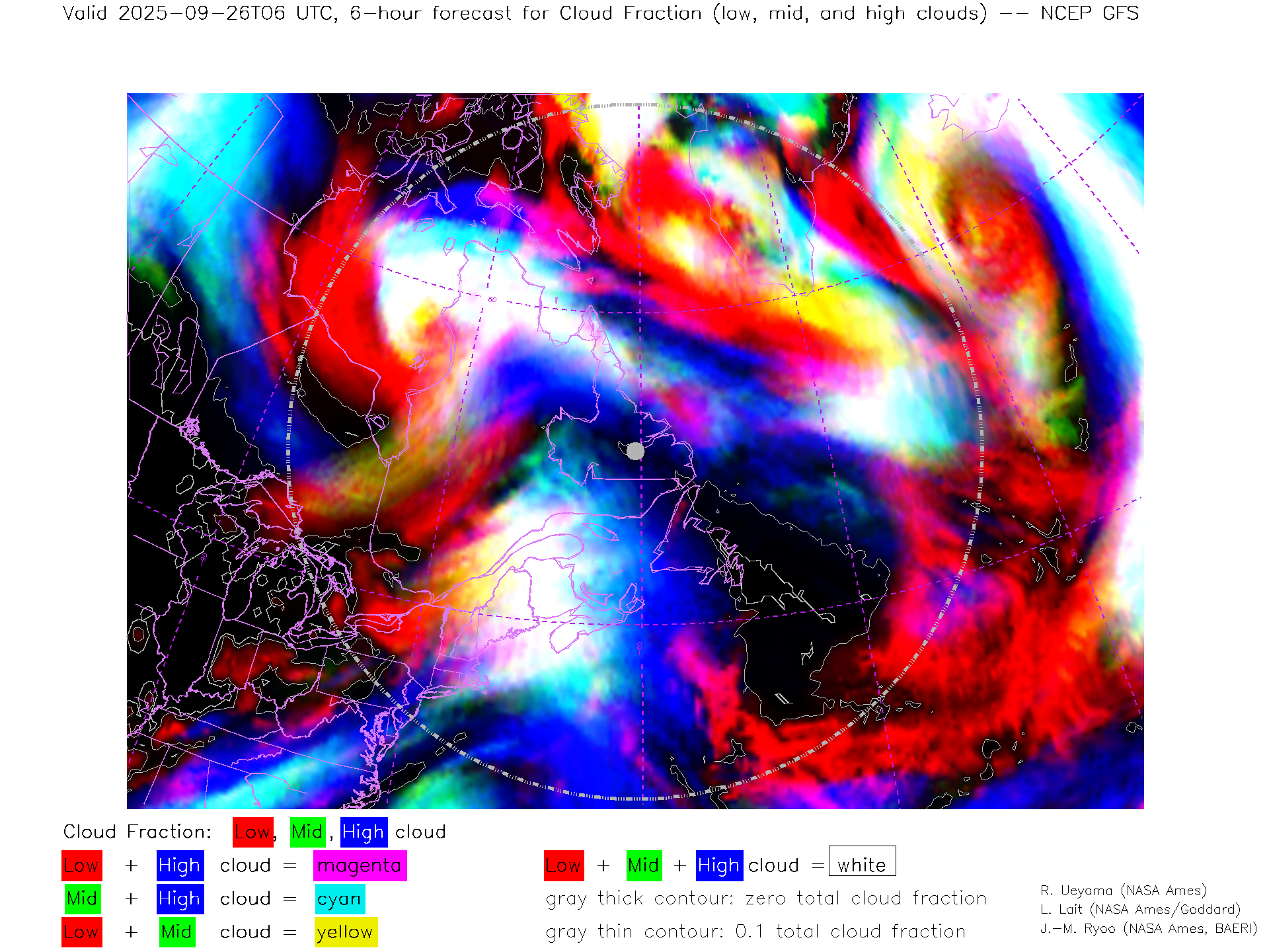 NCEP GFS Forecast Low-, Mid- and High-level Cloud Fraction