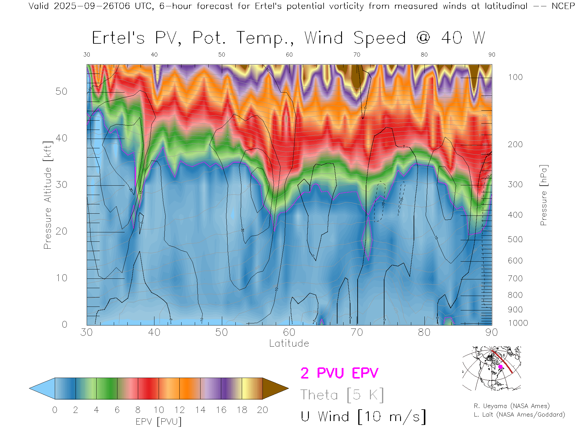 NCEP GFS Forecast PV X-Section (40 W)