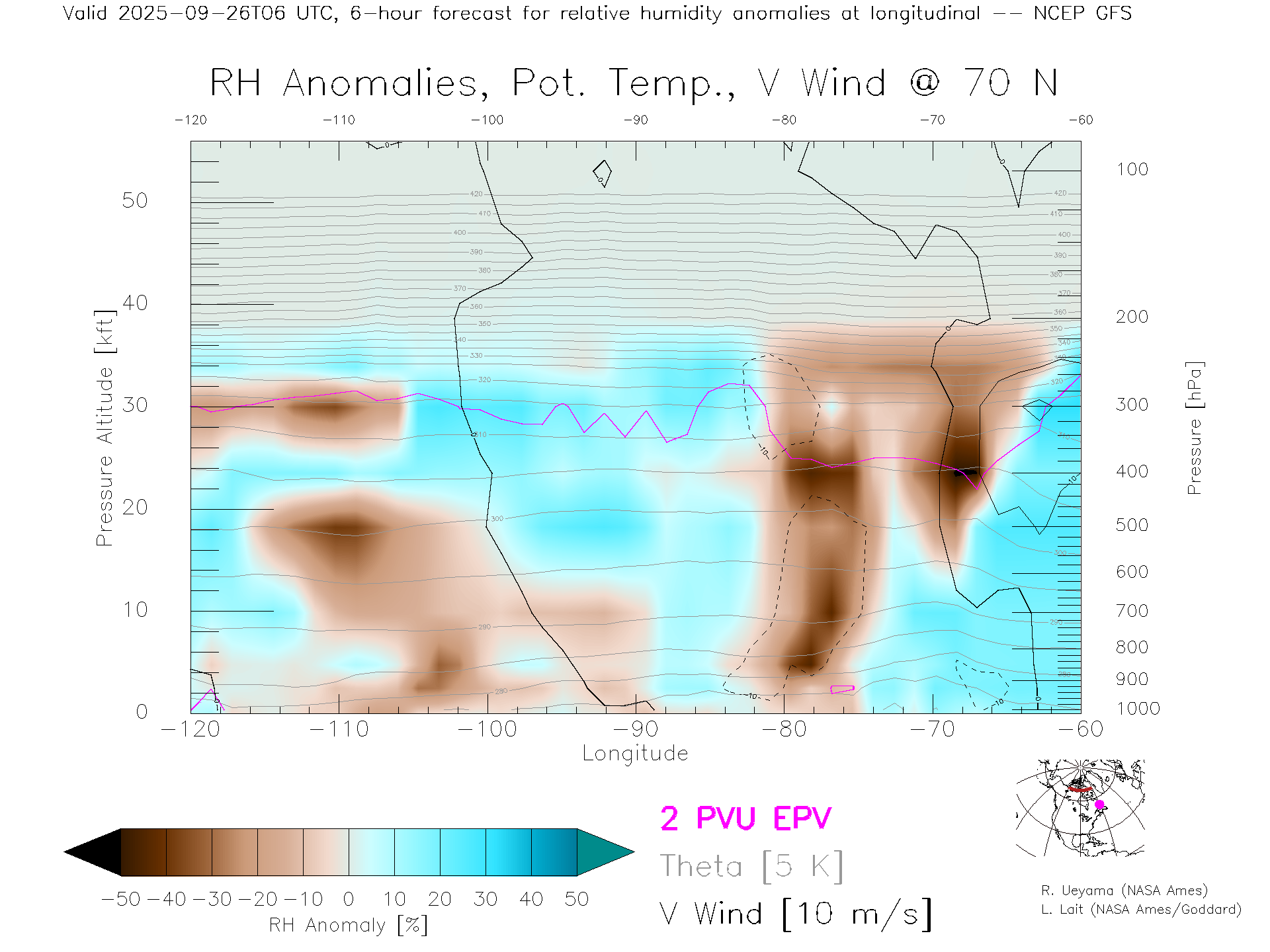 NCEP GFS Forecast Rel. Hum. X-Section (70 N)
