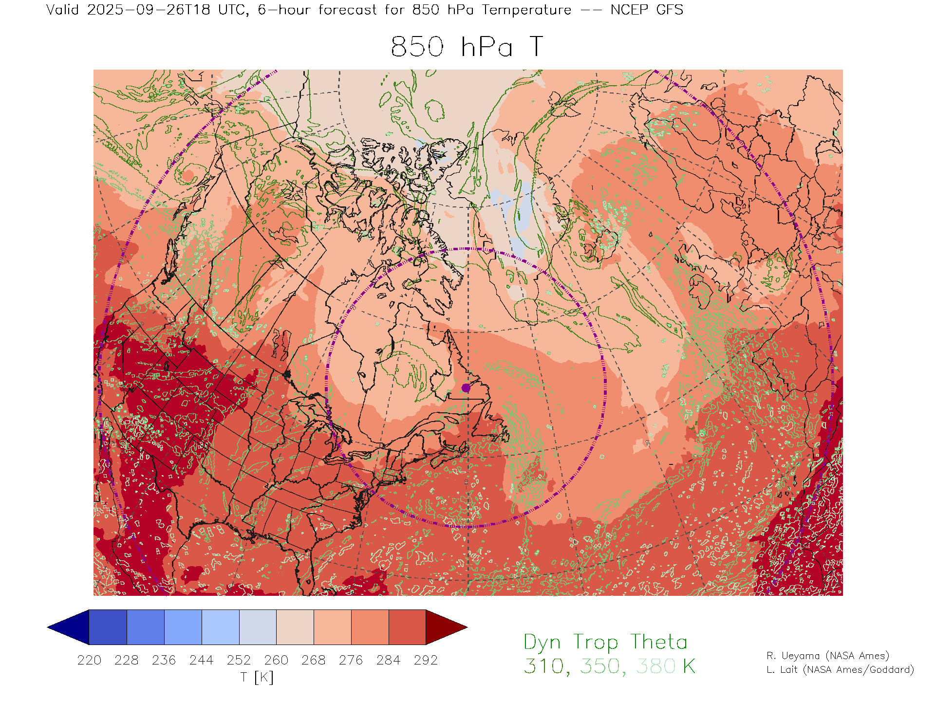 NCEP GFS Forecast 850 hPa Temp.