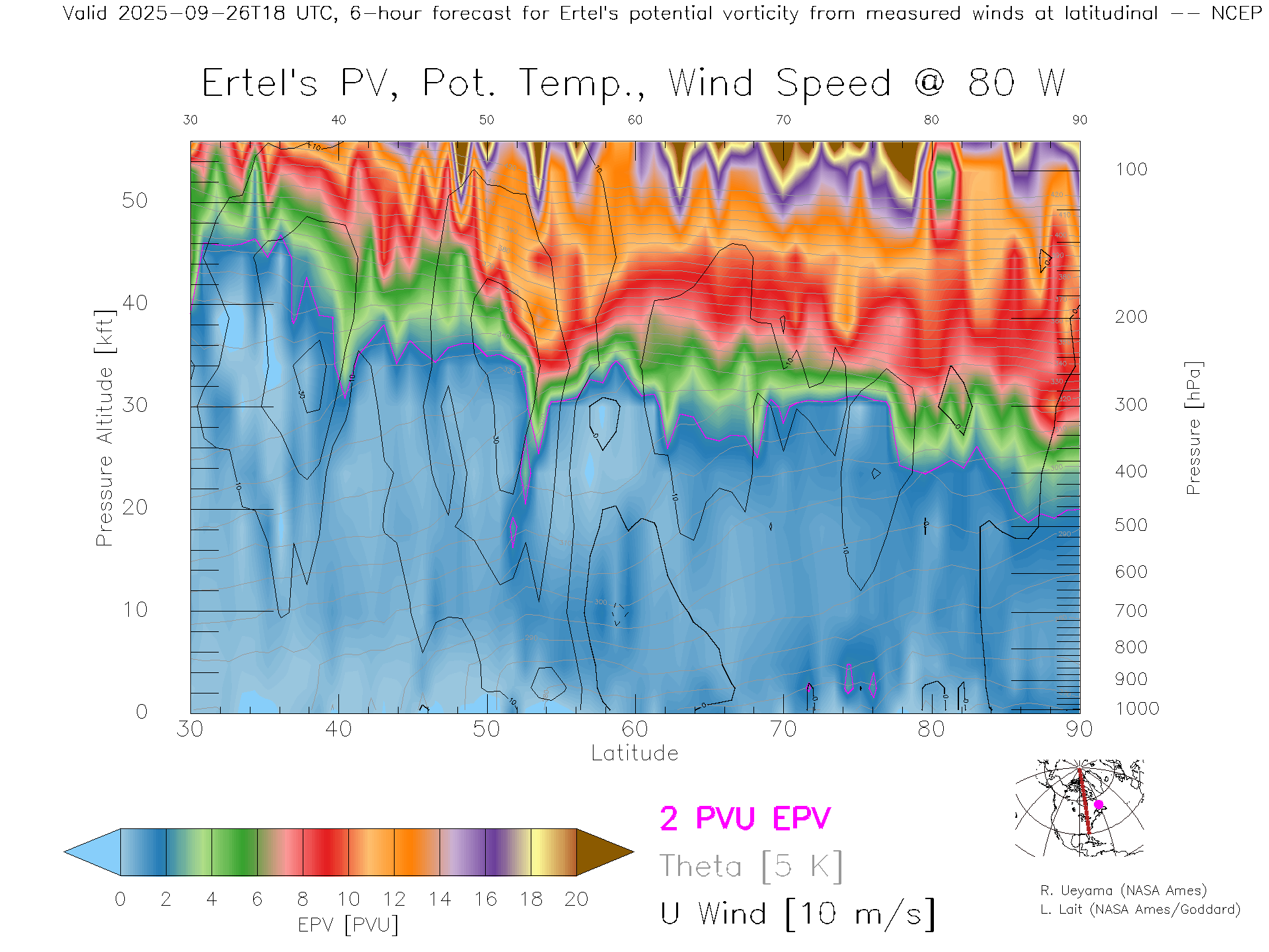 NCEP GFS Forecast PV X-Section (80 W)