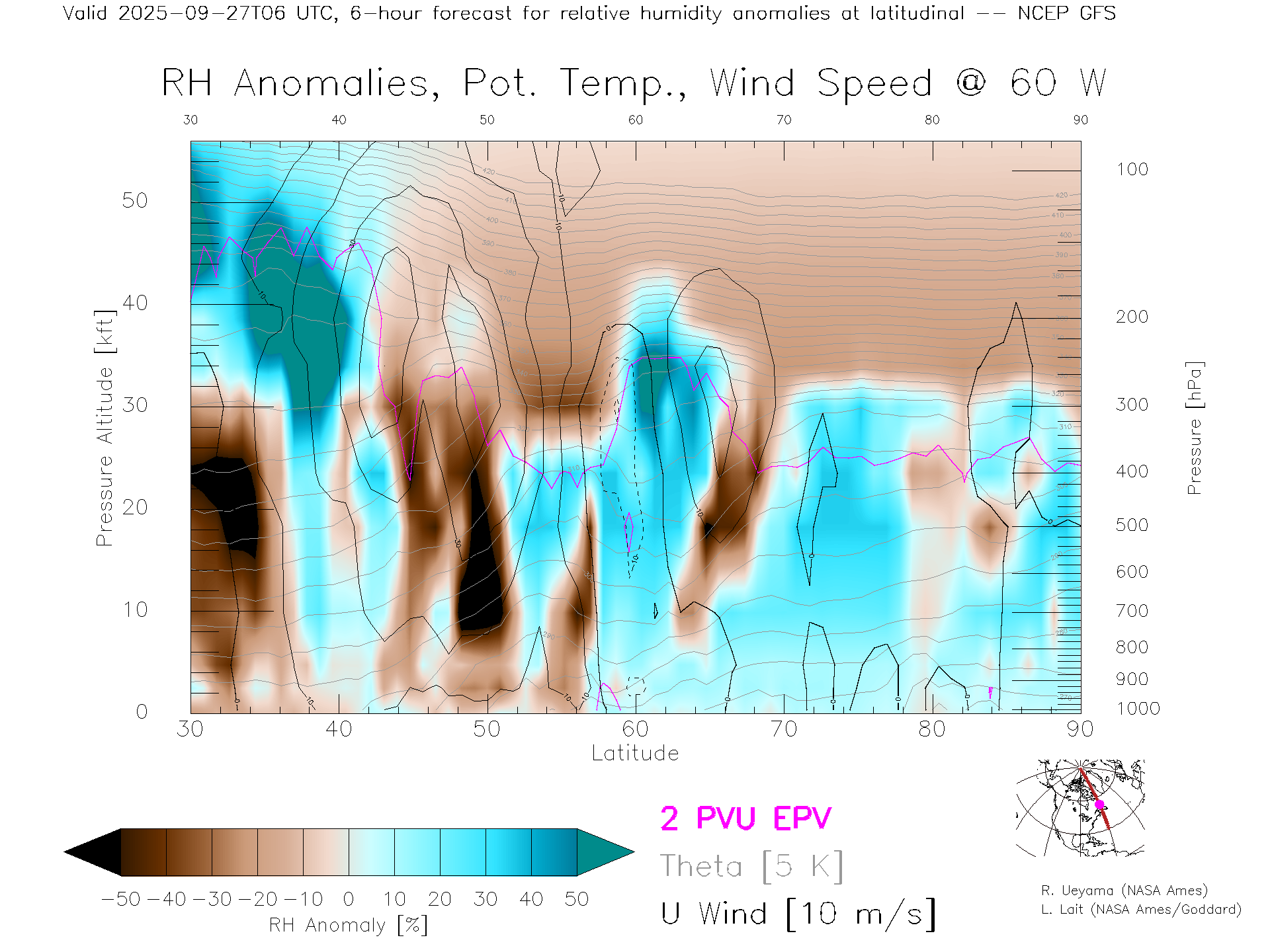 NCEP GFS Forecast Rel. Hum. X-Section (60 W)