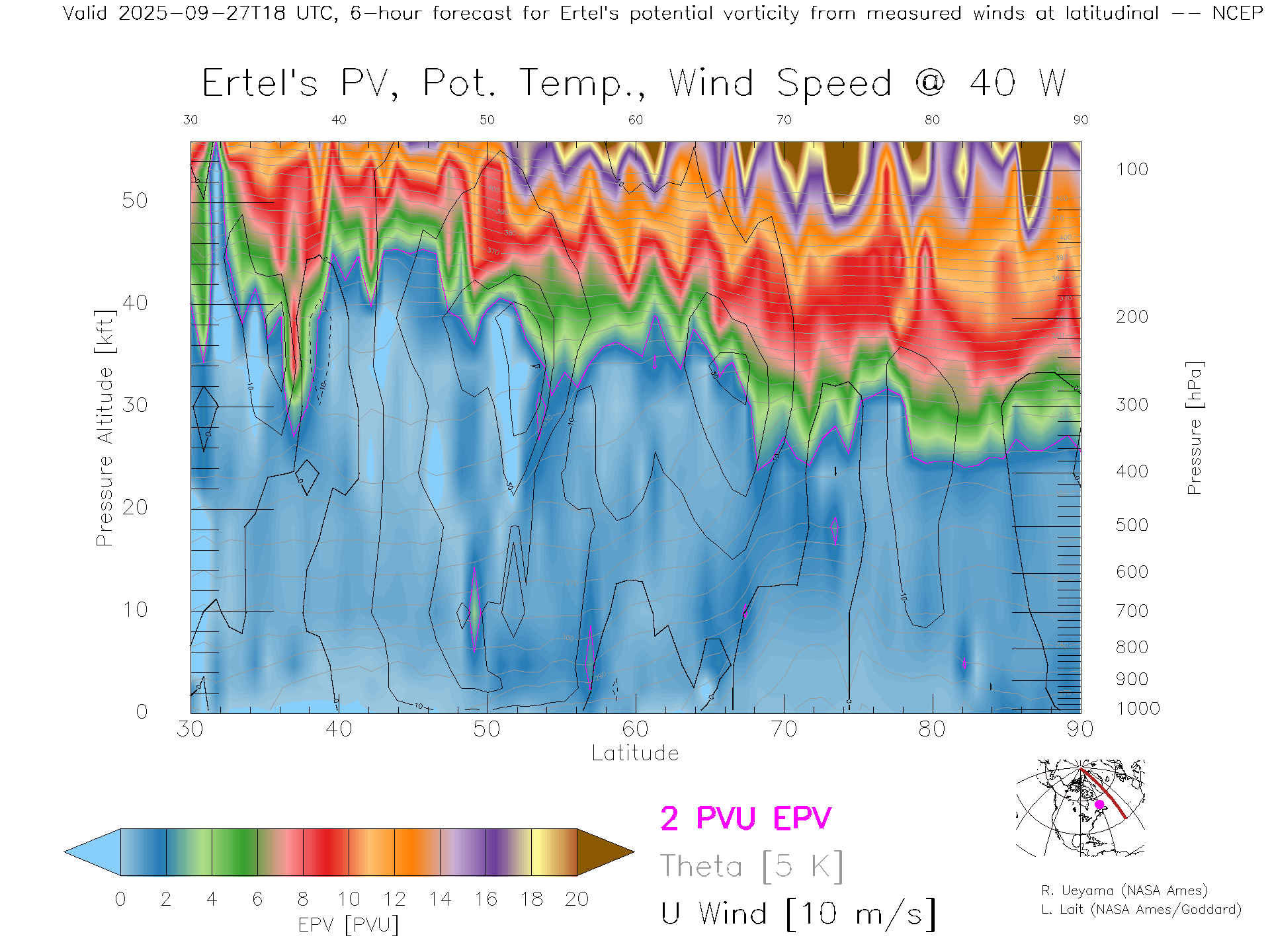 NCEP GFS Forecast PV X-Section (40 W)