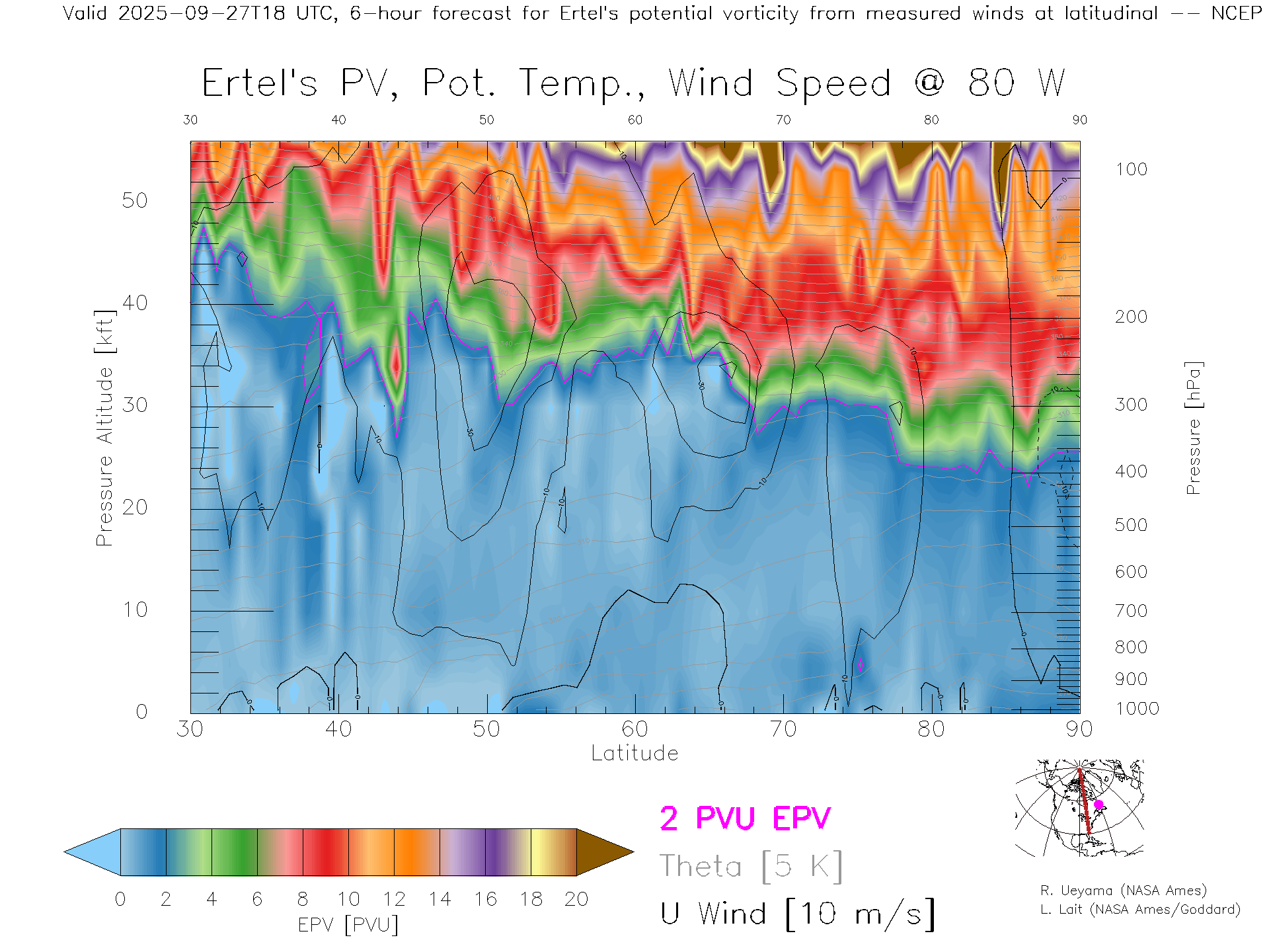 NCEP GFS Forecast PV X-Section (80 W)
