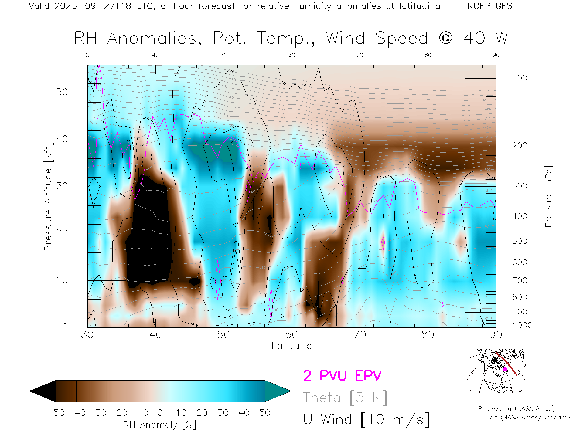 NCEP GFS Forecast Rel. Hum. X-Section (40 W)