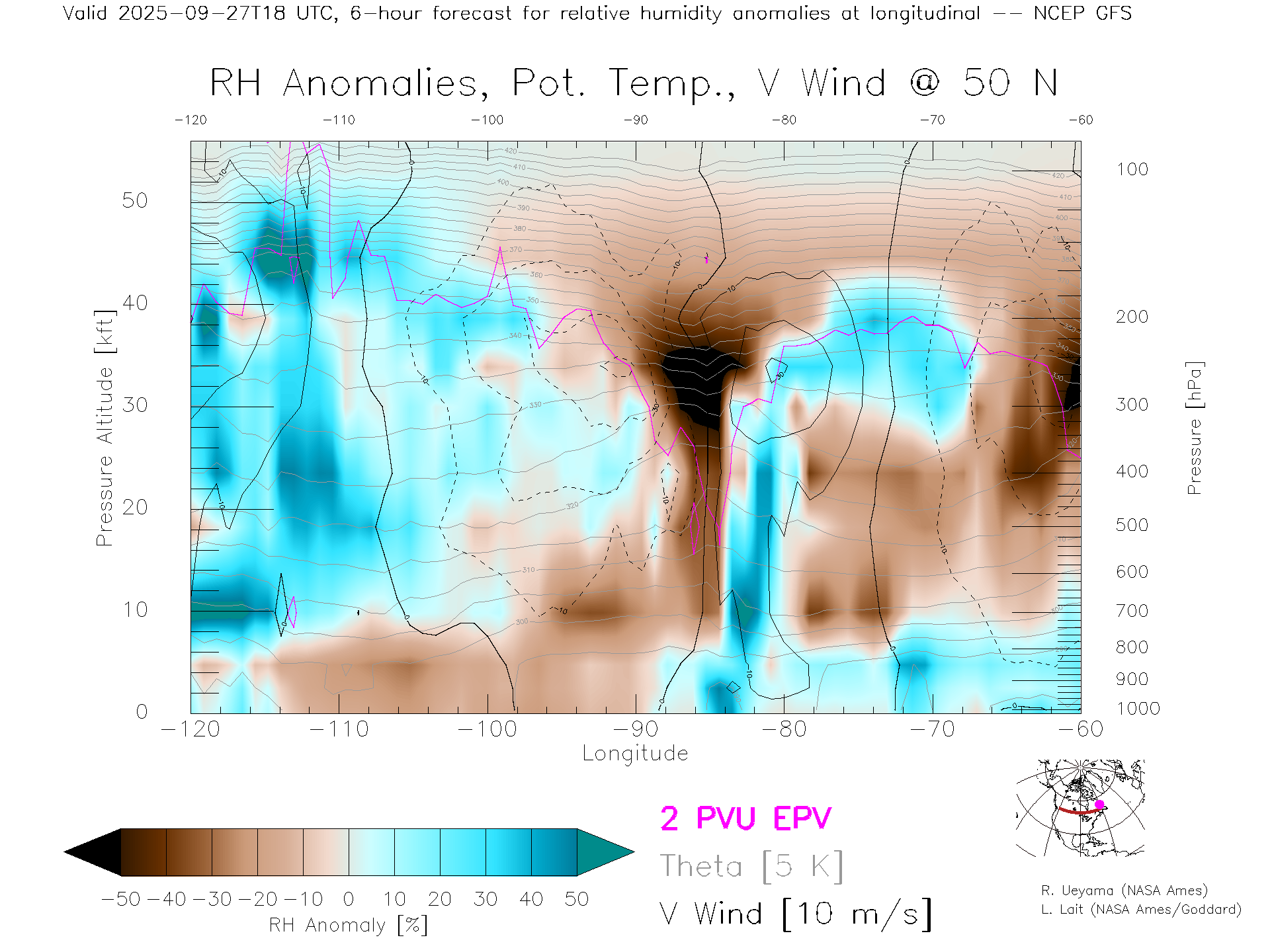 NCEP GFS Forecast Rel. Hum. X-Section (50 N)