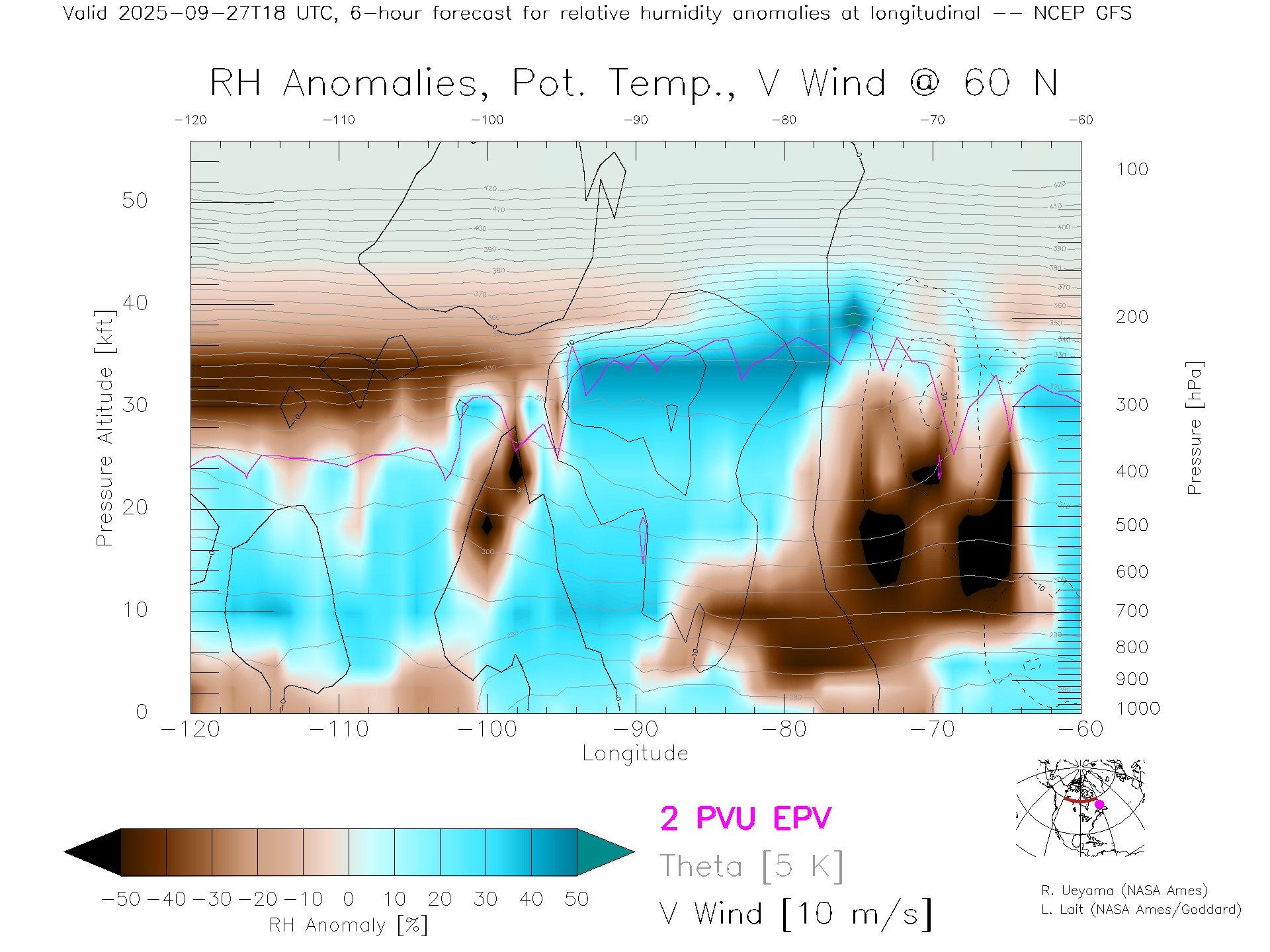 NCEP GFS Forecast Rel. Hum. X-Section (60 N)