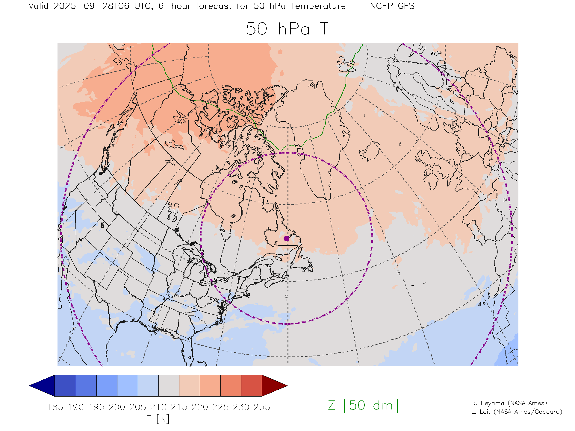 NCEP GFS Forecast 50 hPa Temp.