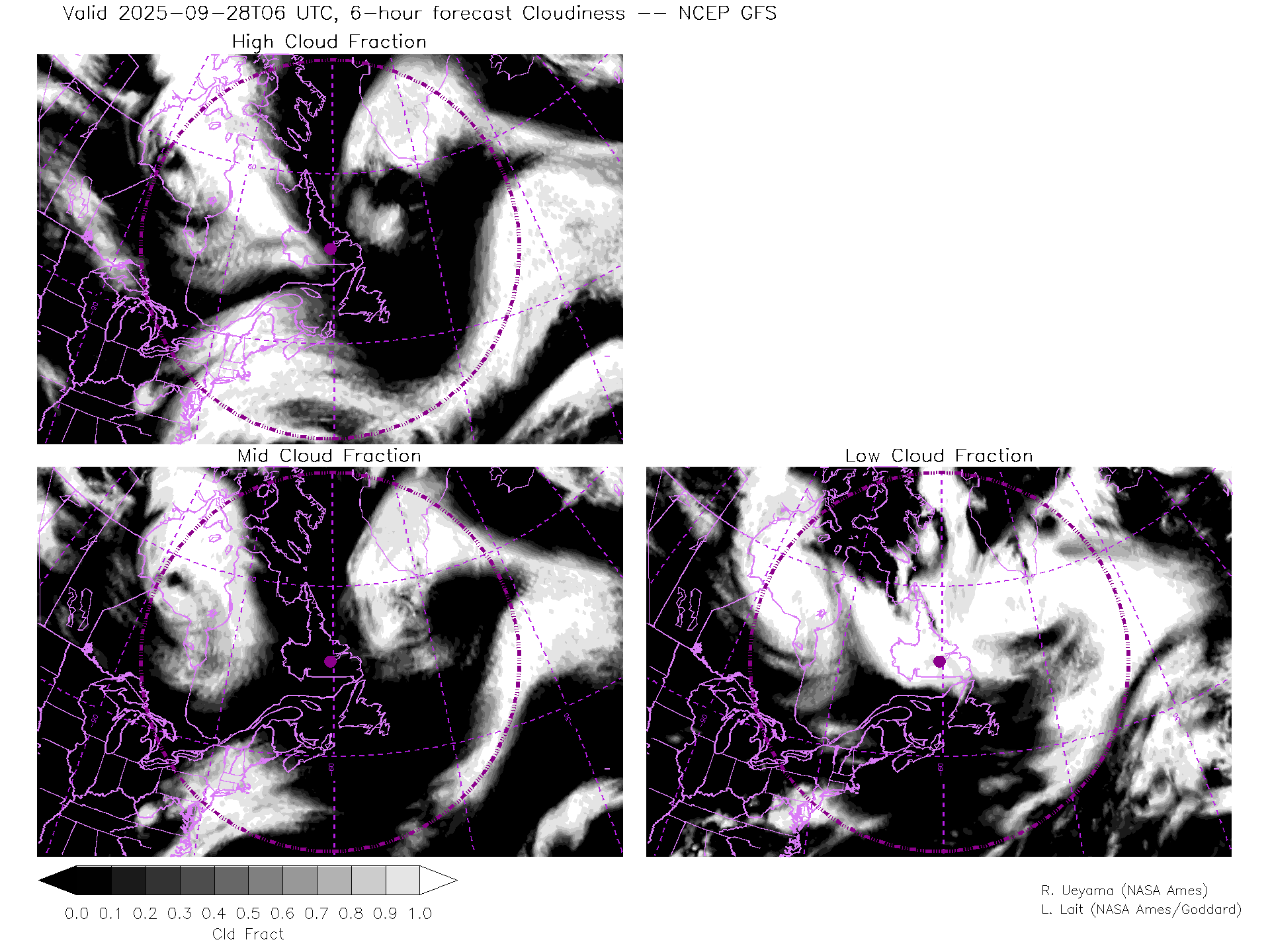 NCEP GFS Forecast Cloud Fraction (High, Mid, Low)