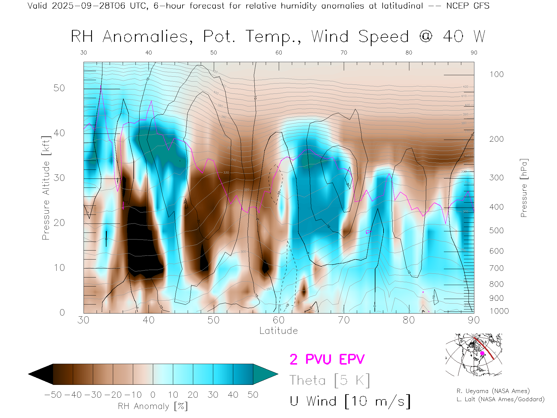 NCEP GFS Forecast Rel. Hum. X-Section (40 W)