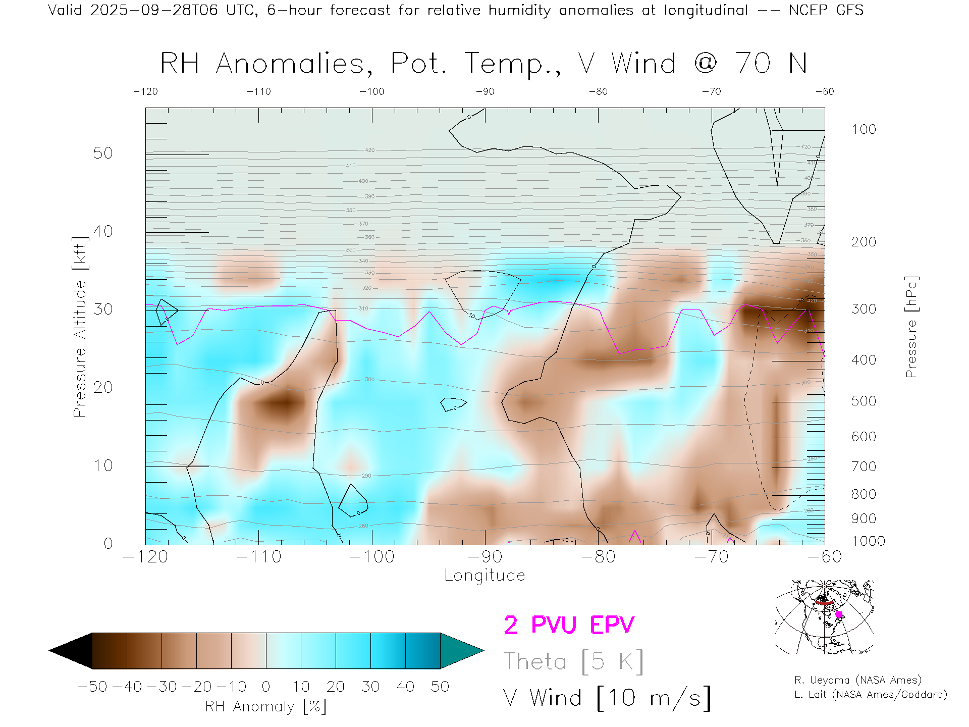 NCEP GFS Forecast Rel. Hum. X-Section (70 N)