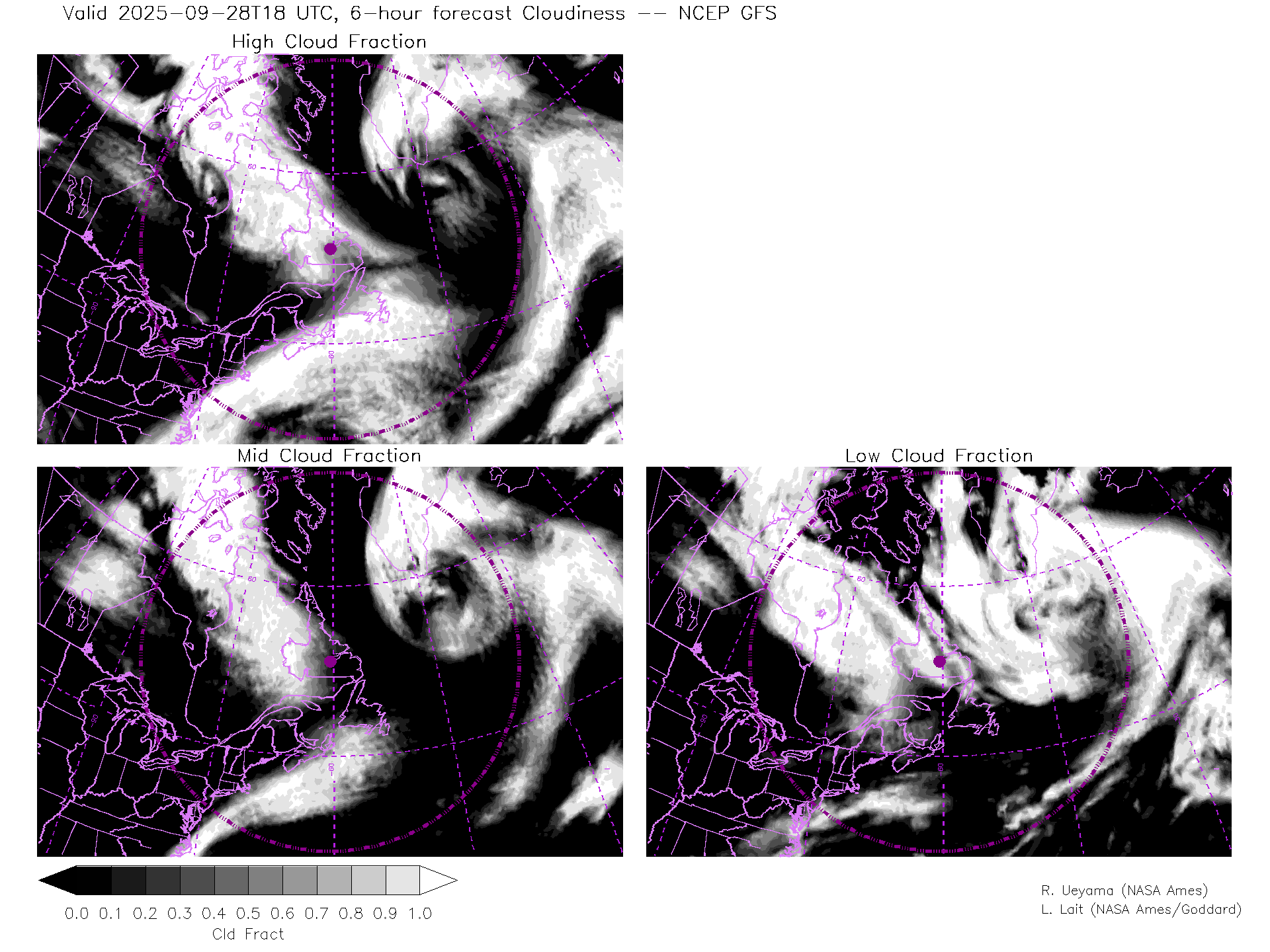 NCEP GFS Forecast Cloud Fraction (High, Mid, Low)