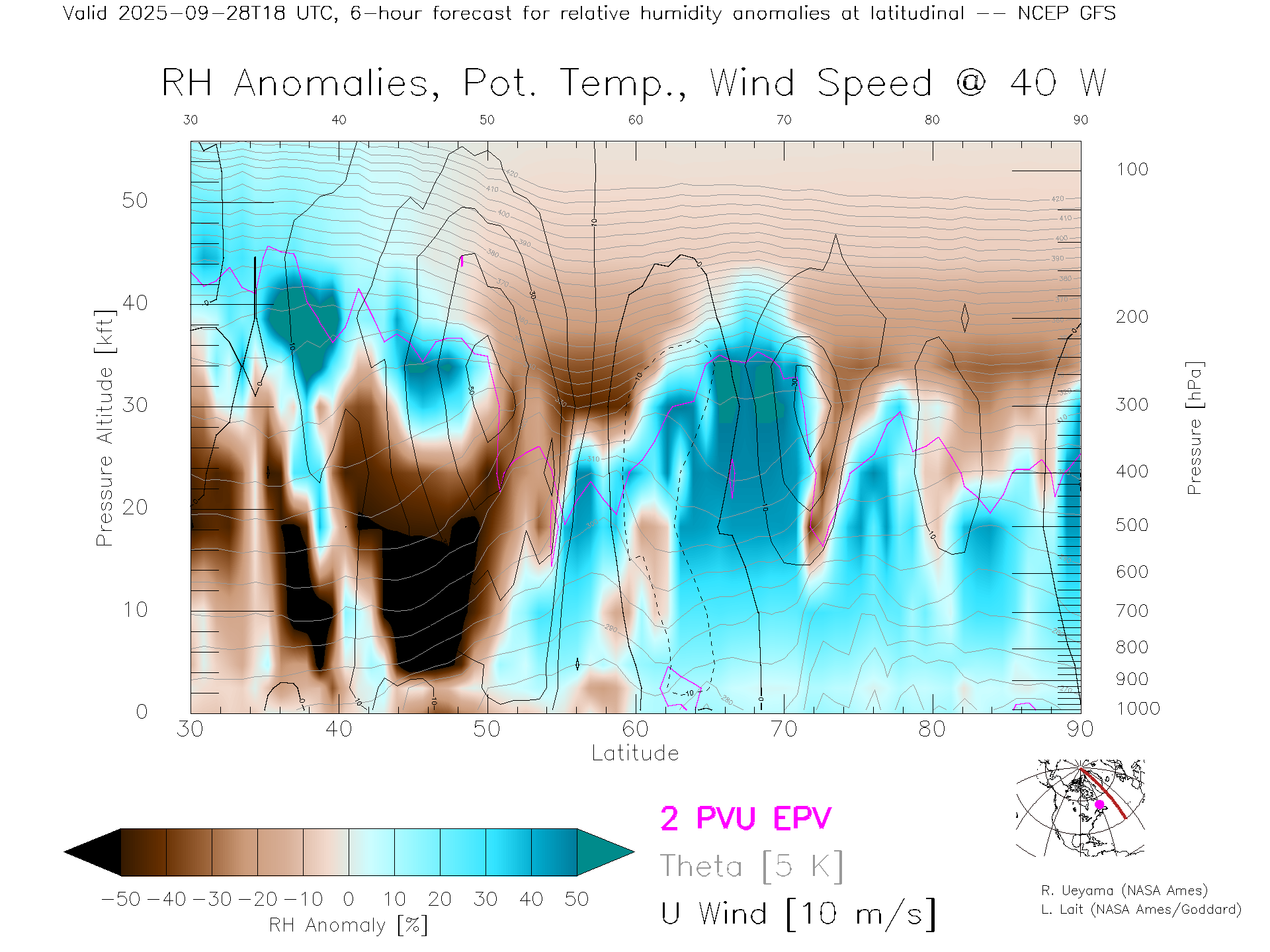 NCEP GFS Forecast Rel. Hum. X-Section (40 W)
