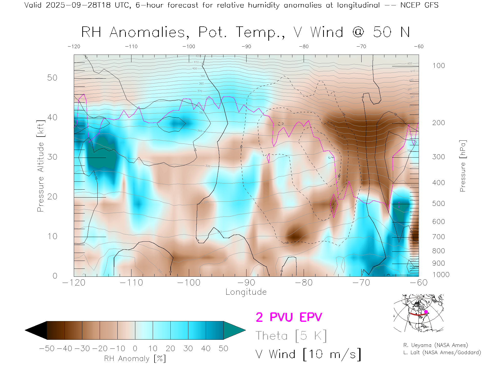 NCEP GFS Forecast Rel. Hum. X-Section (50 N)