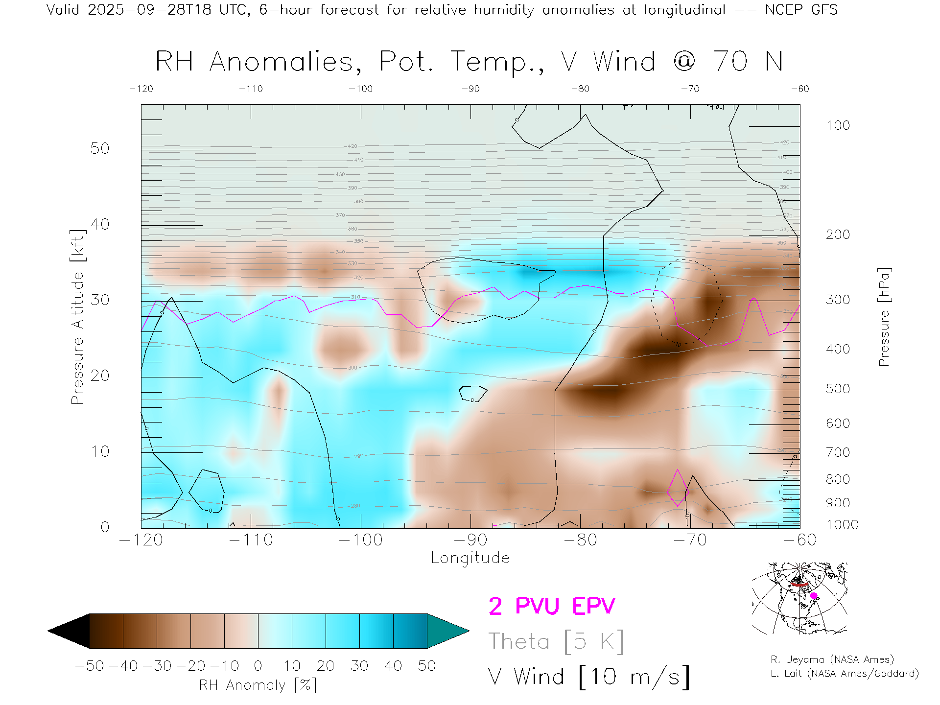 NCEP GFS Forecast Rel. Hum. X-Section (70 N)