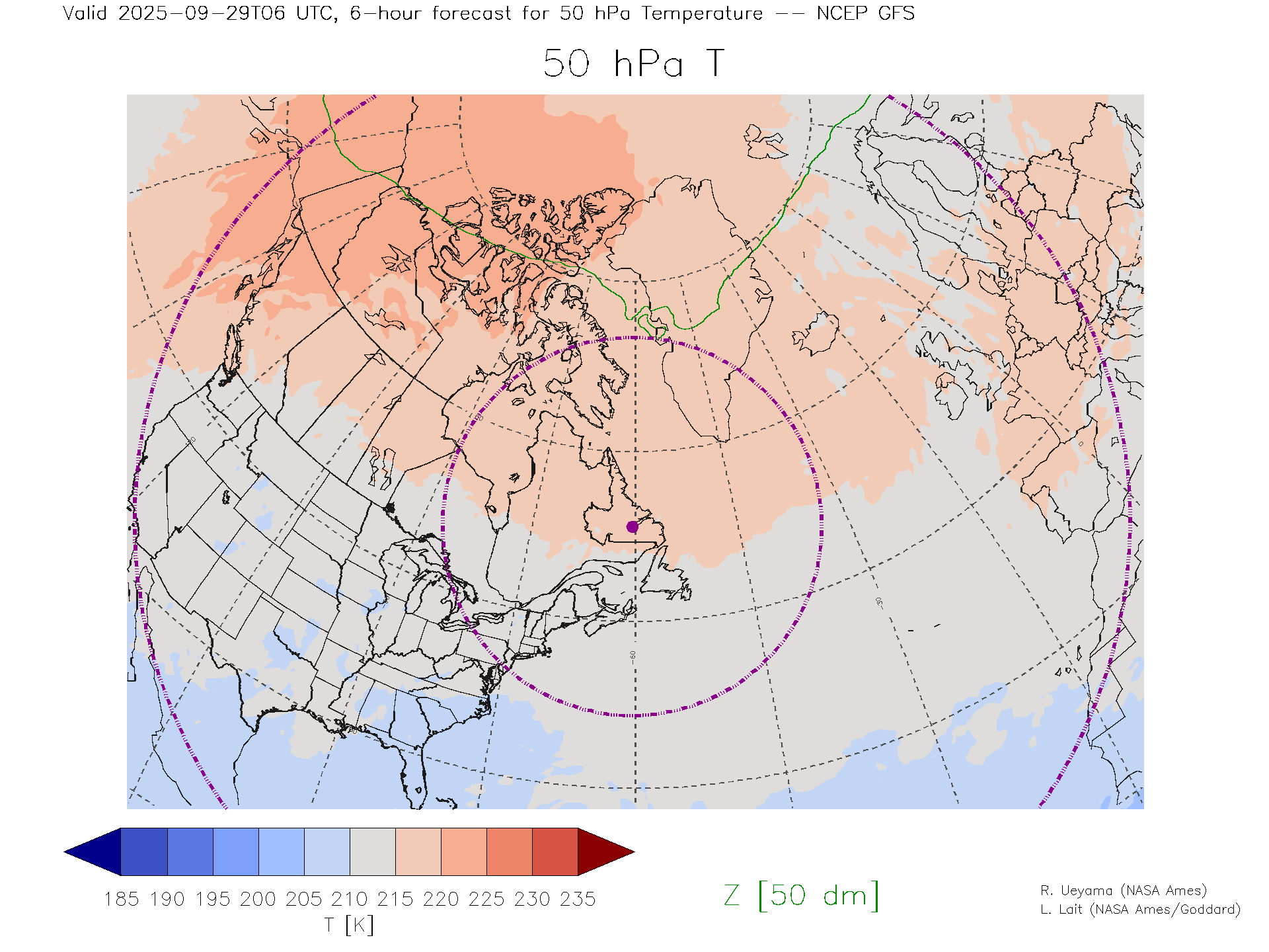 NCEP GFS Forecast 50 hPa Temp.