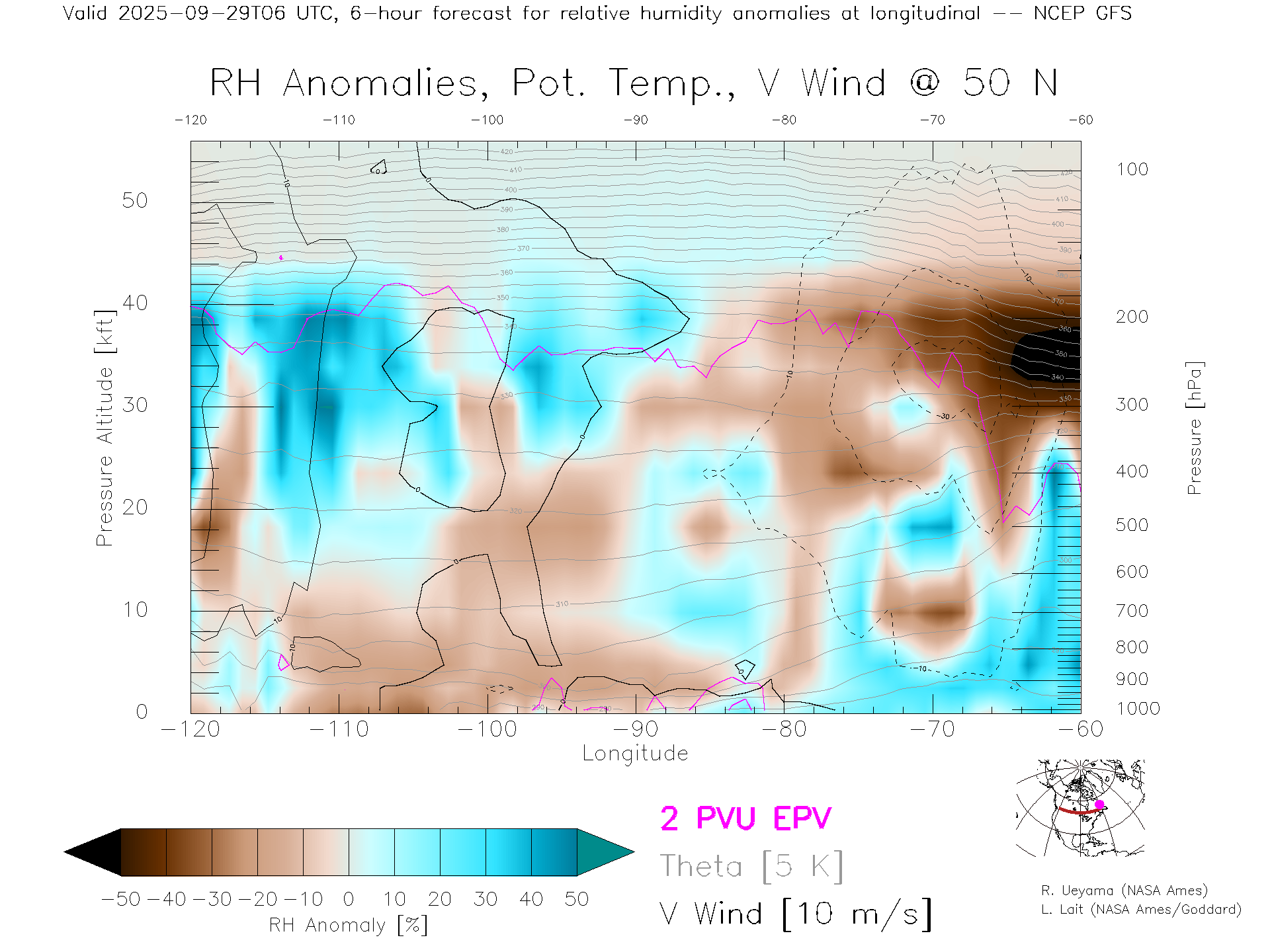 NCEP GFS Forecast Rel. Hum. X-Section (50 N)