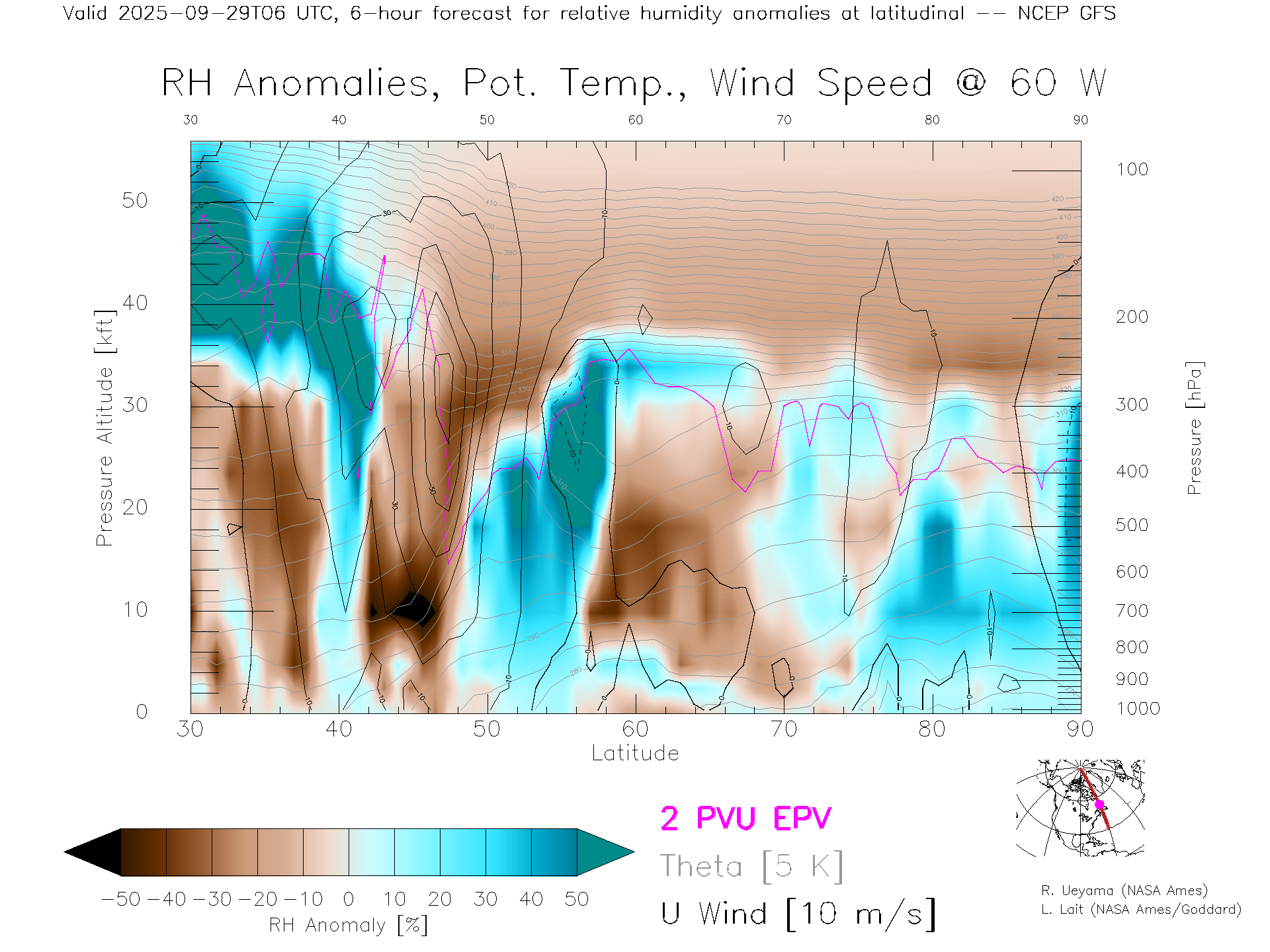 NCEP GFS Forecast Rel. Hum. X-Section (60 W)