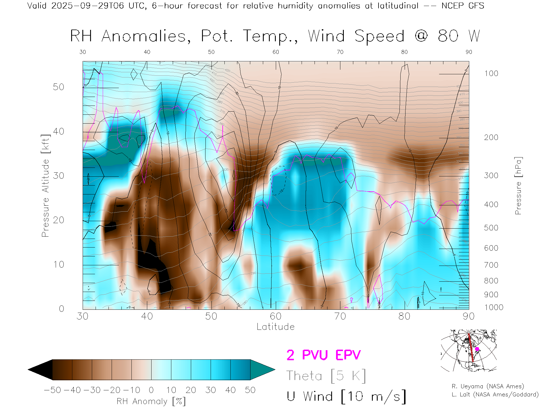 NCEP GFS Forecast Rel. Hum. X-Section (80 W)