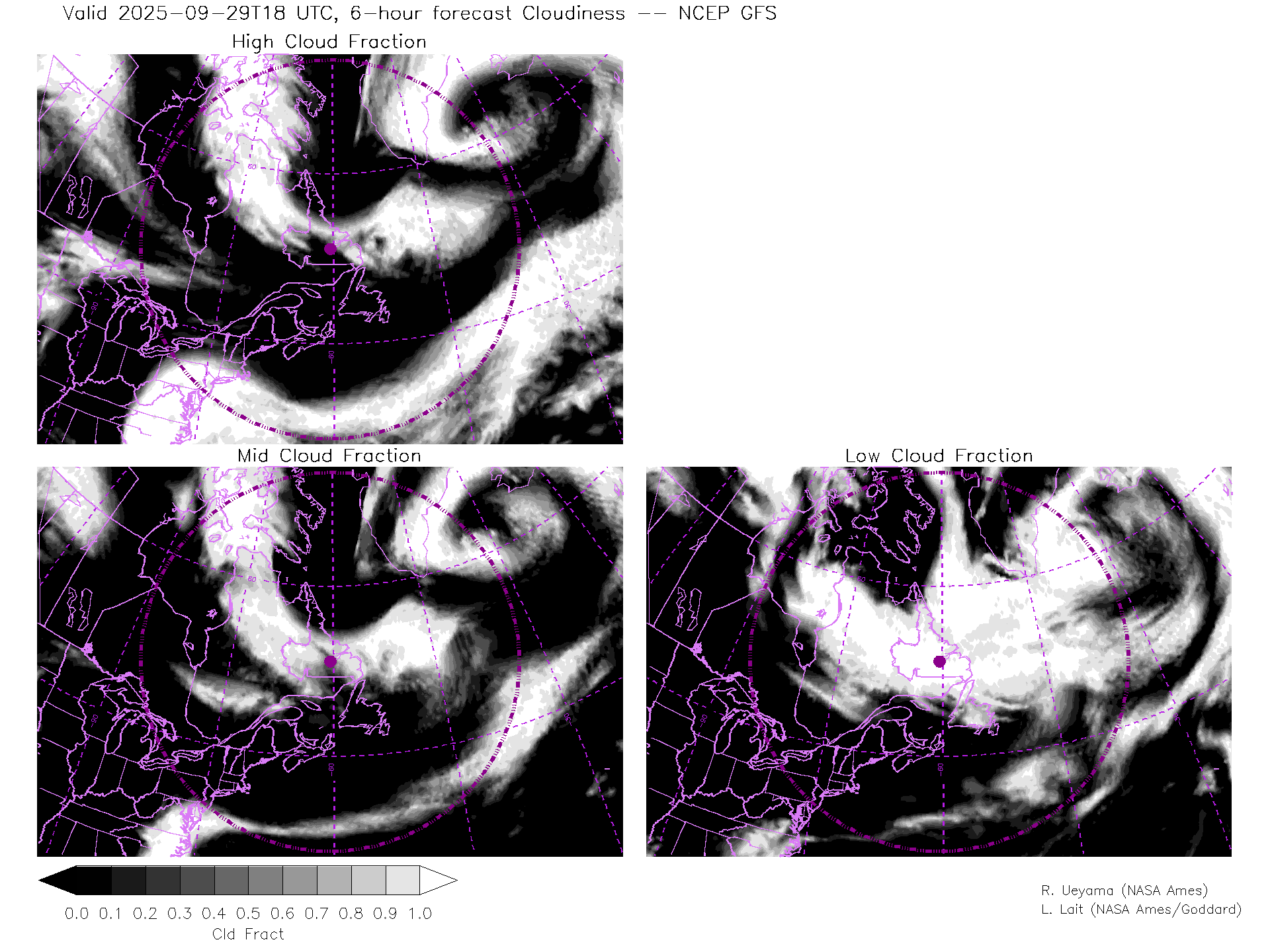 NCEP GFS Forecast Cloud Fraction (High, Mid, Low)