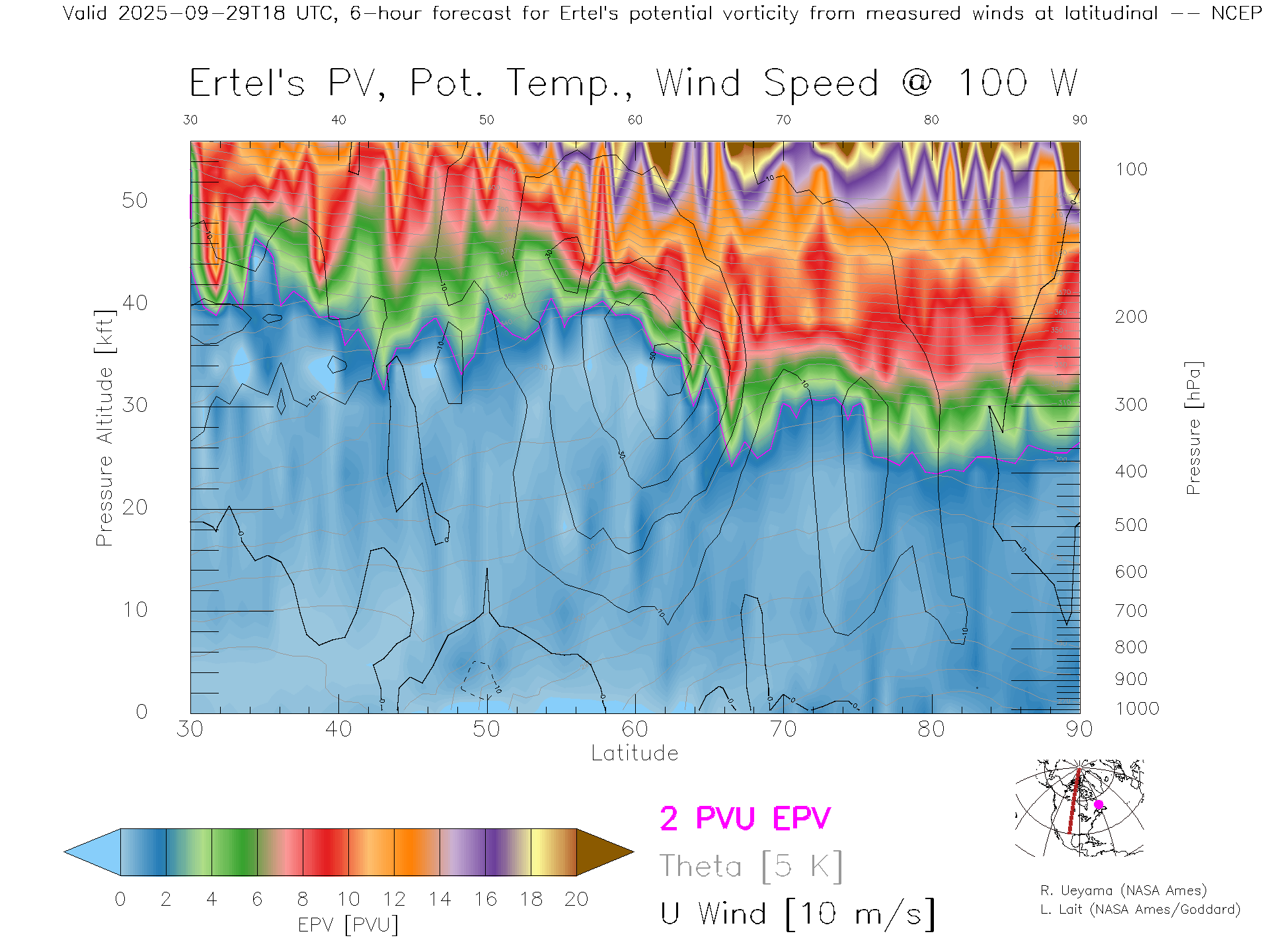 NCEP GFS Forecast PV X-Section (100 W)