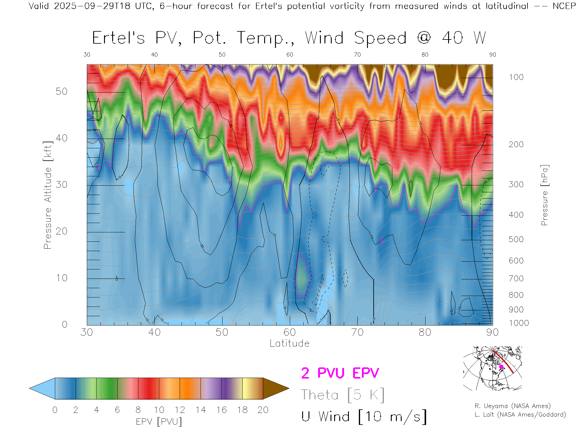 NCEP GFS Forecast PV X-Section (40 W)