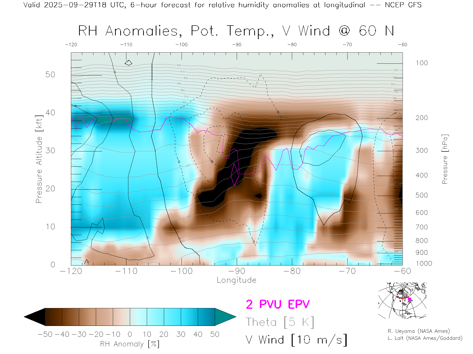 NCEP GFS Forecast Rel. Hum. X-Section (60 N)