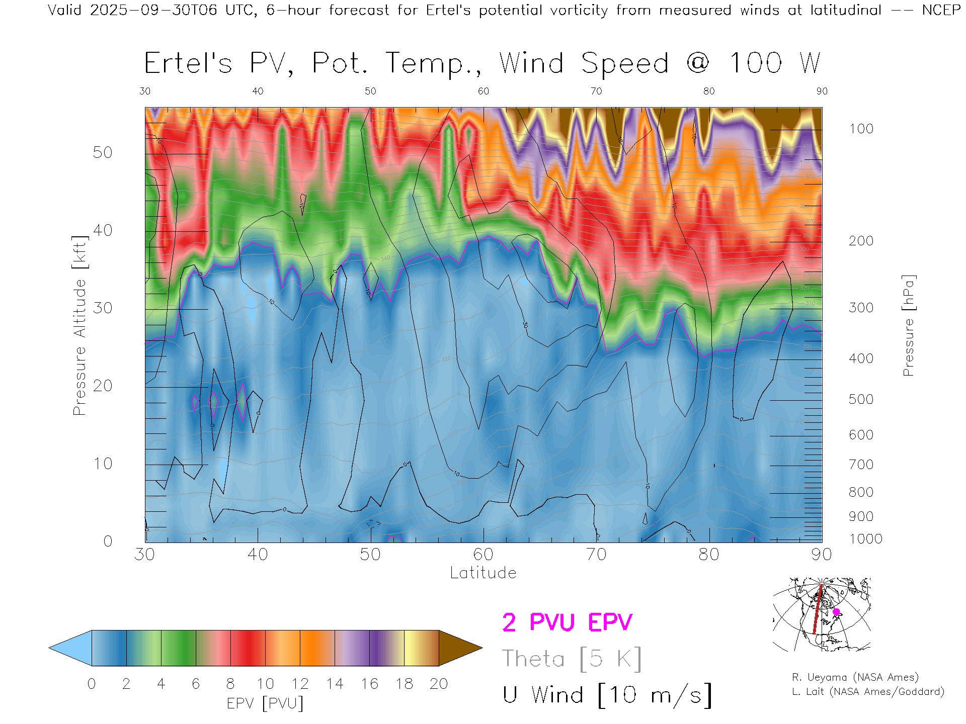 NCEP GFS Forecast PV X-Section (100 W)