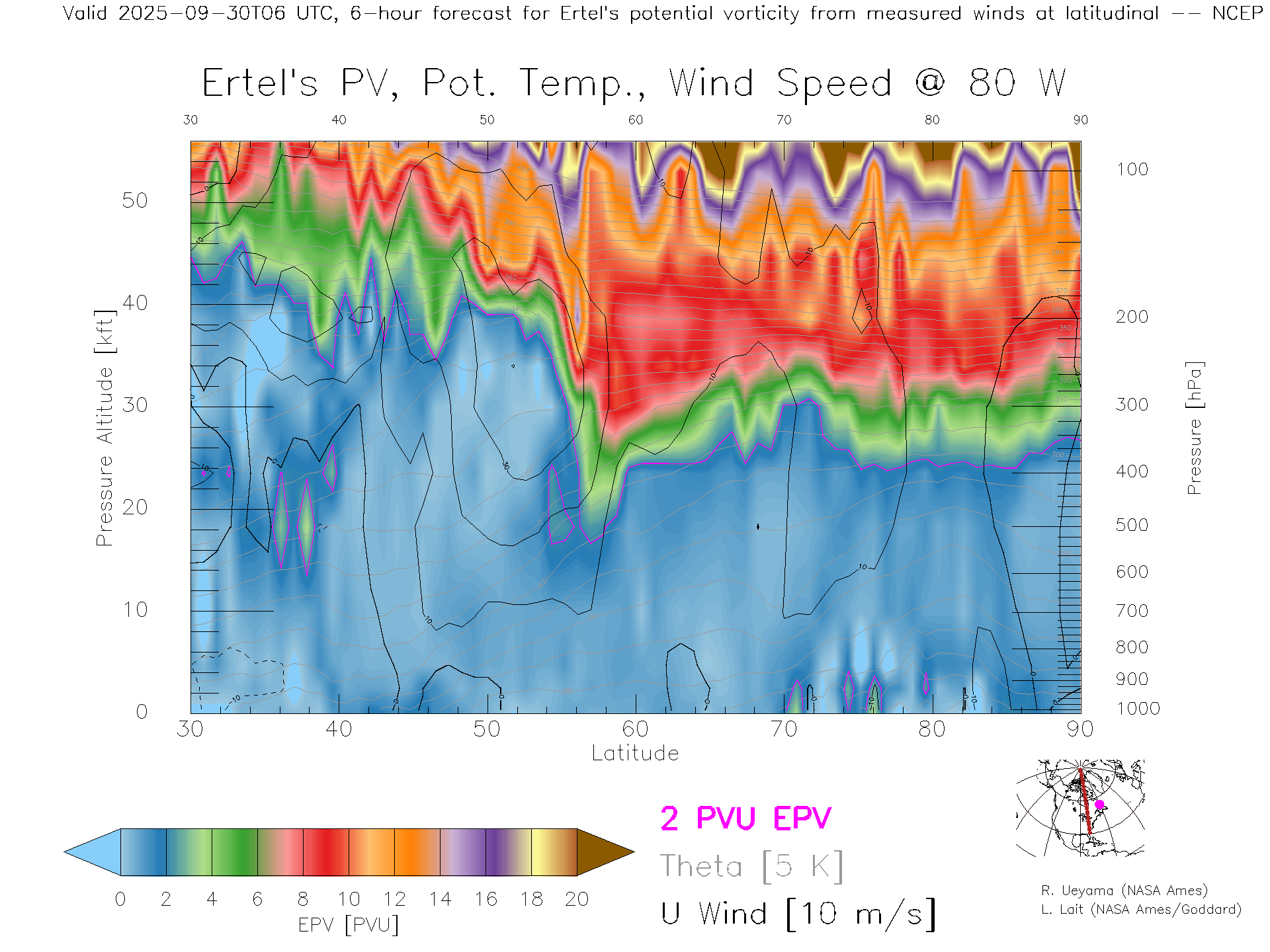 NCEP GFS Forecast PV X-Section (80 W)