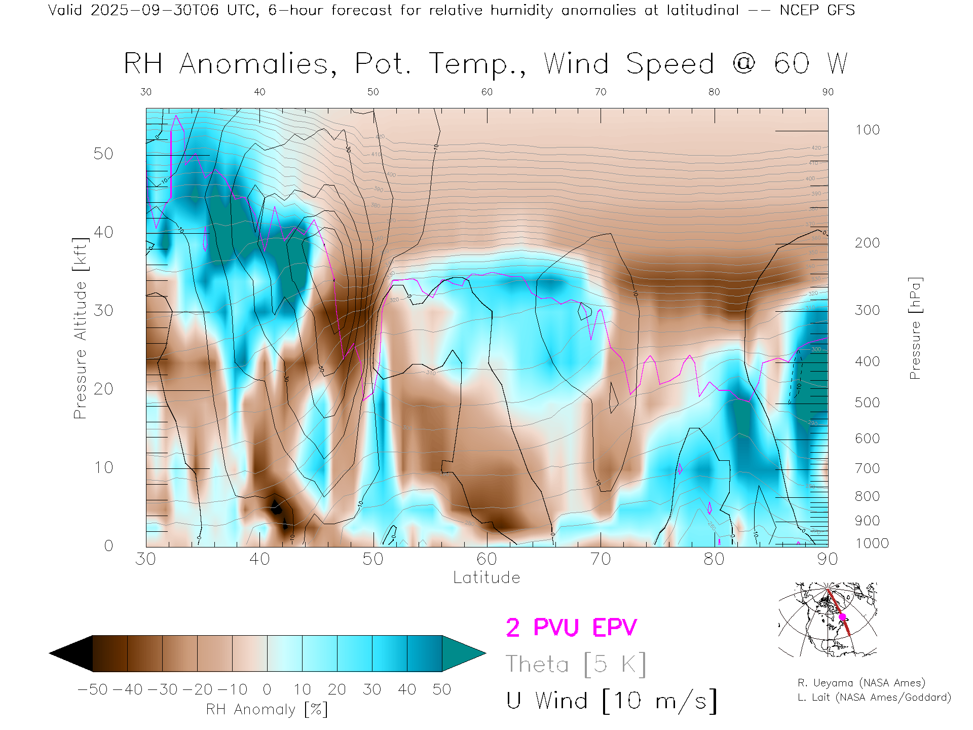 NCEP GFS Forecast Rel. Hum. X-Section (60 W)