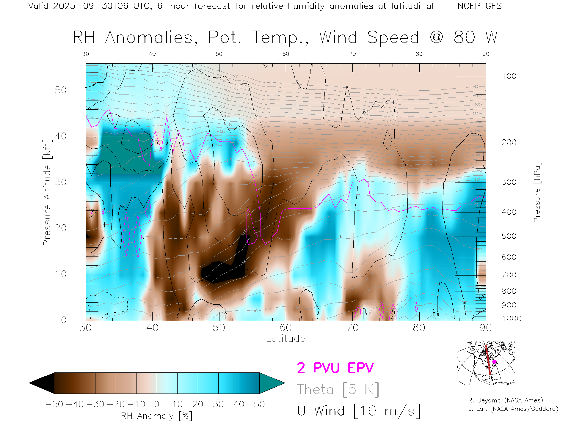 NCEP GFS Forecast Rel. Hum. X-Section (80 W)