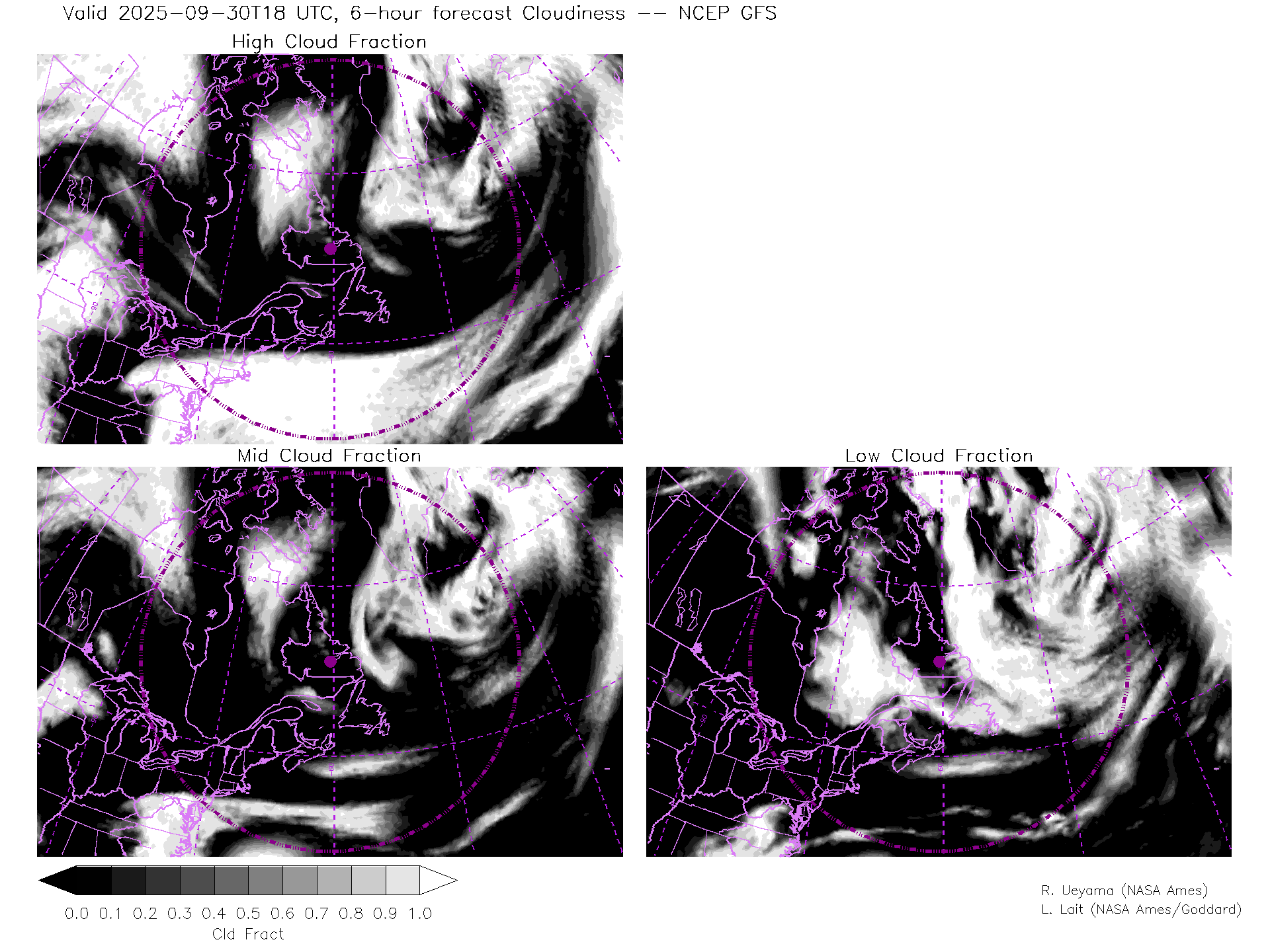 NCEP GFS Forecast Cloud Fraction (High, Mid, Low)