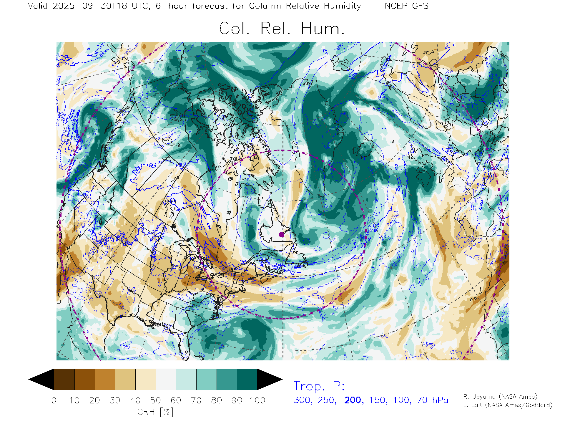 NCEP GFS Forecast Column Rel. Humidity