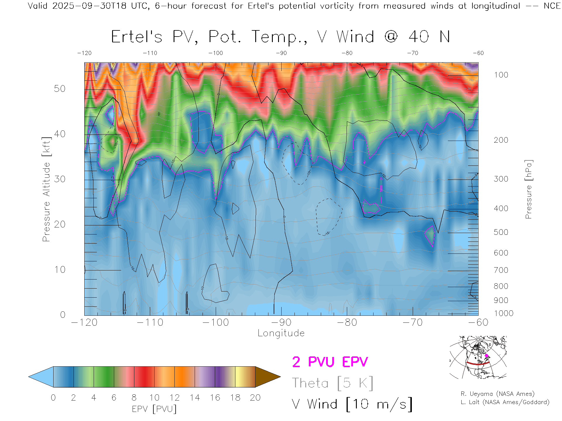 NCEP GFS Forecast PV X-Section (40 N)