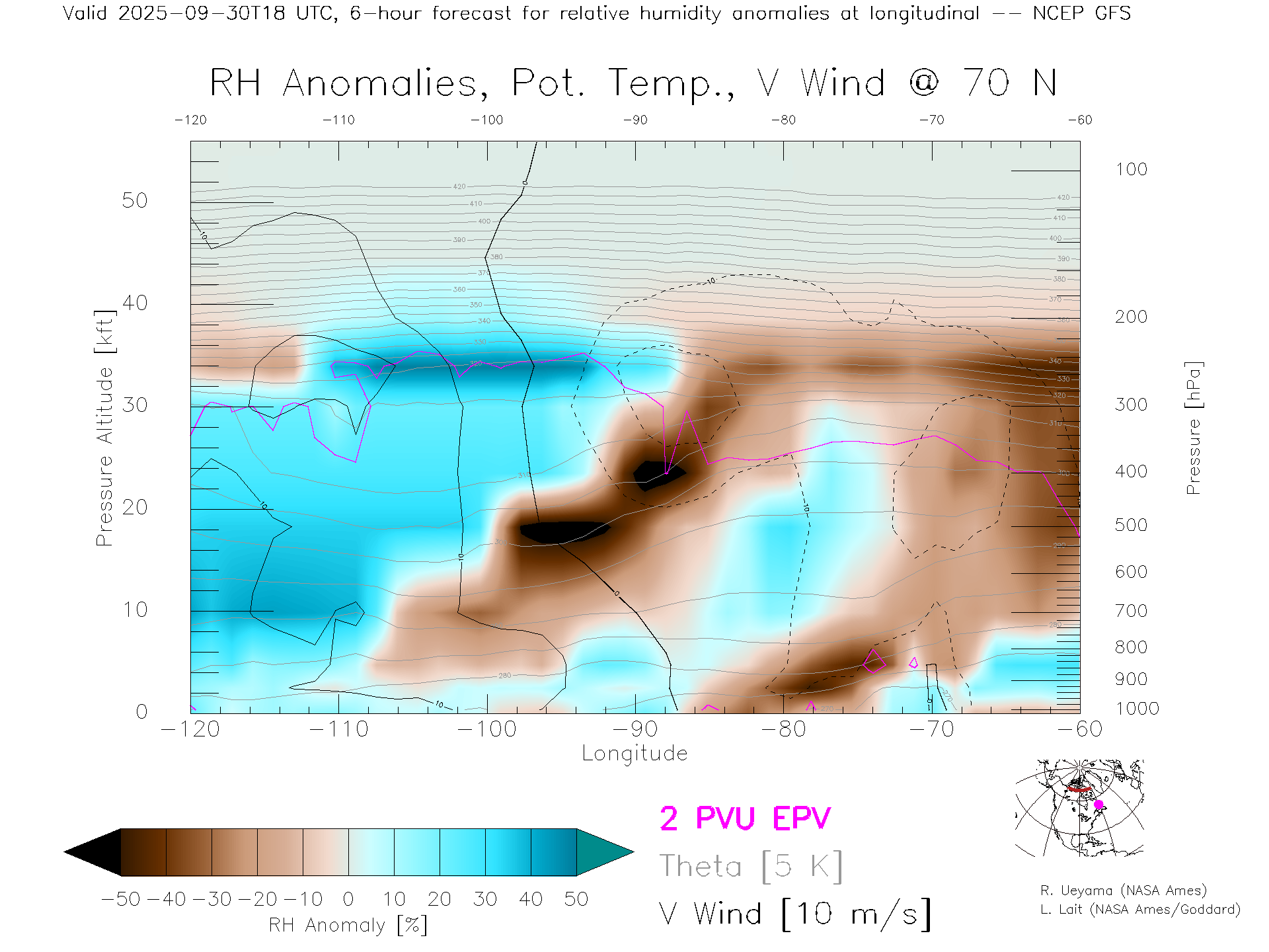 NCEP GFS Forecast Rel. Hum. X-Section (70 N)