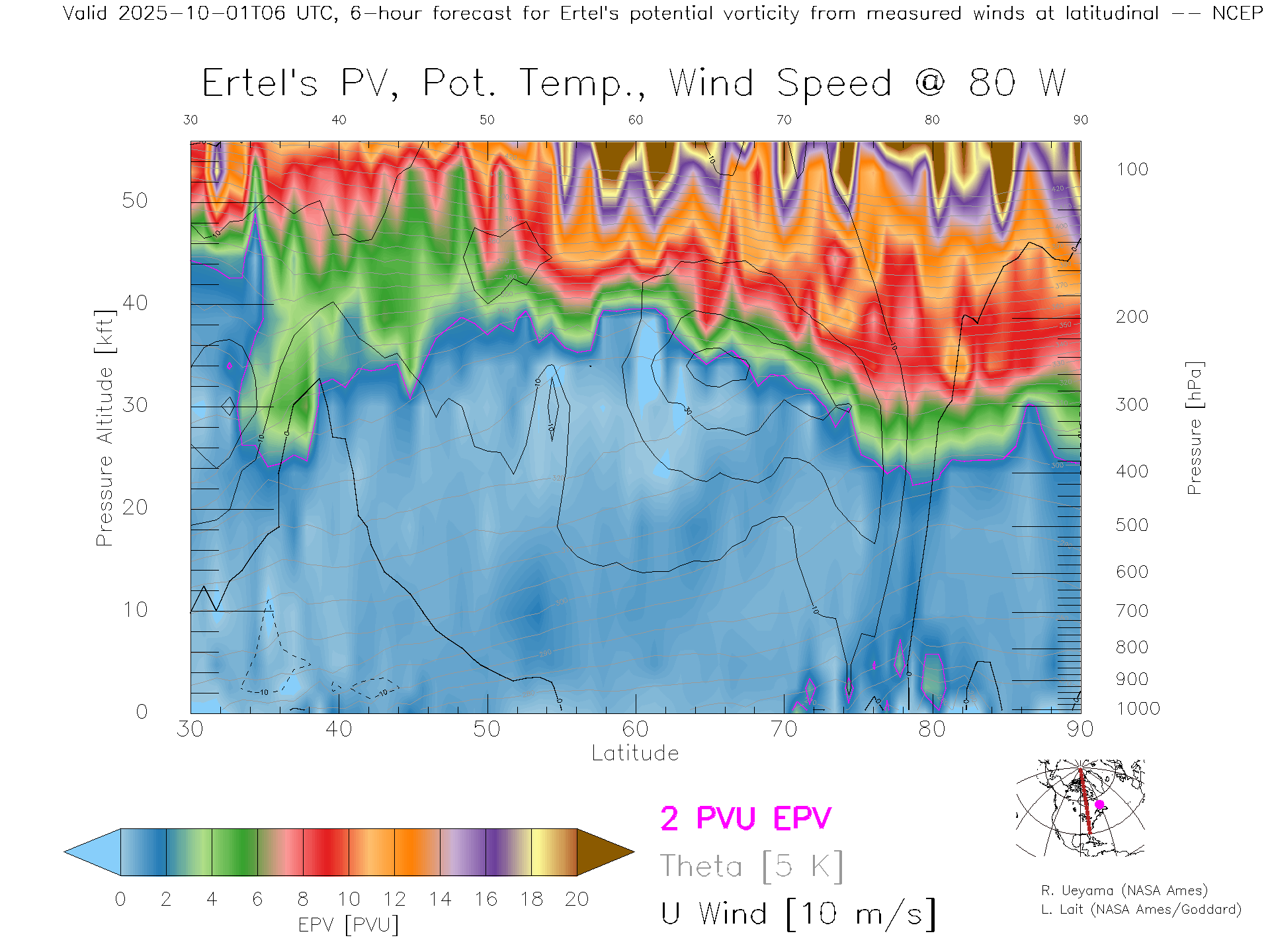 NCEP GFS Forecast PV X-Section (80 W)