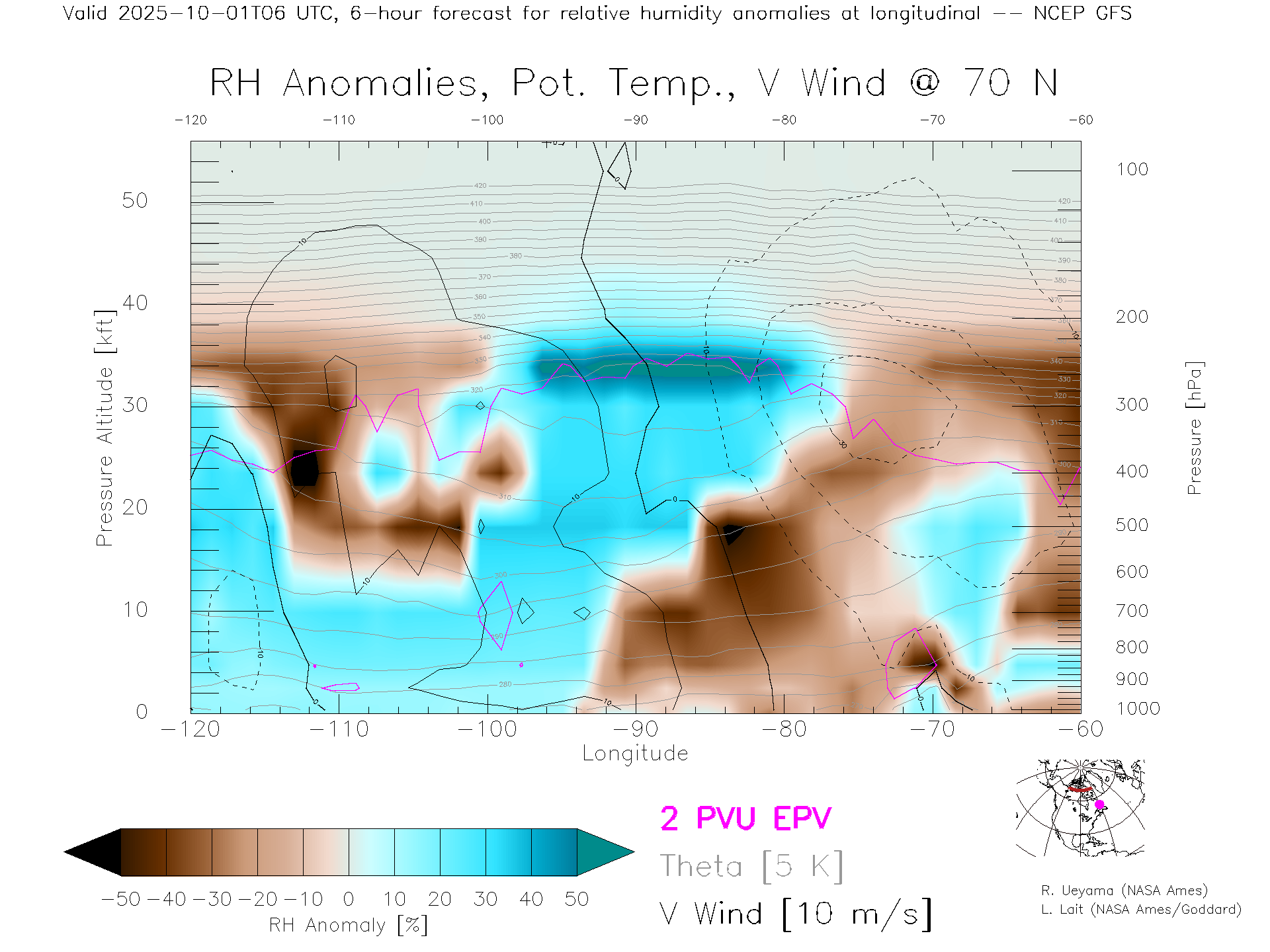 NCEP GFS Forecast Rel. Hum. X-Section (70 N)