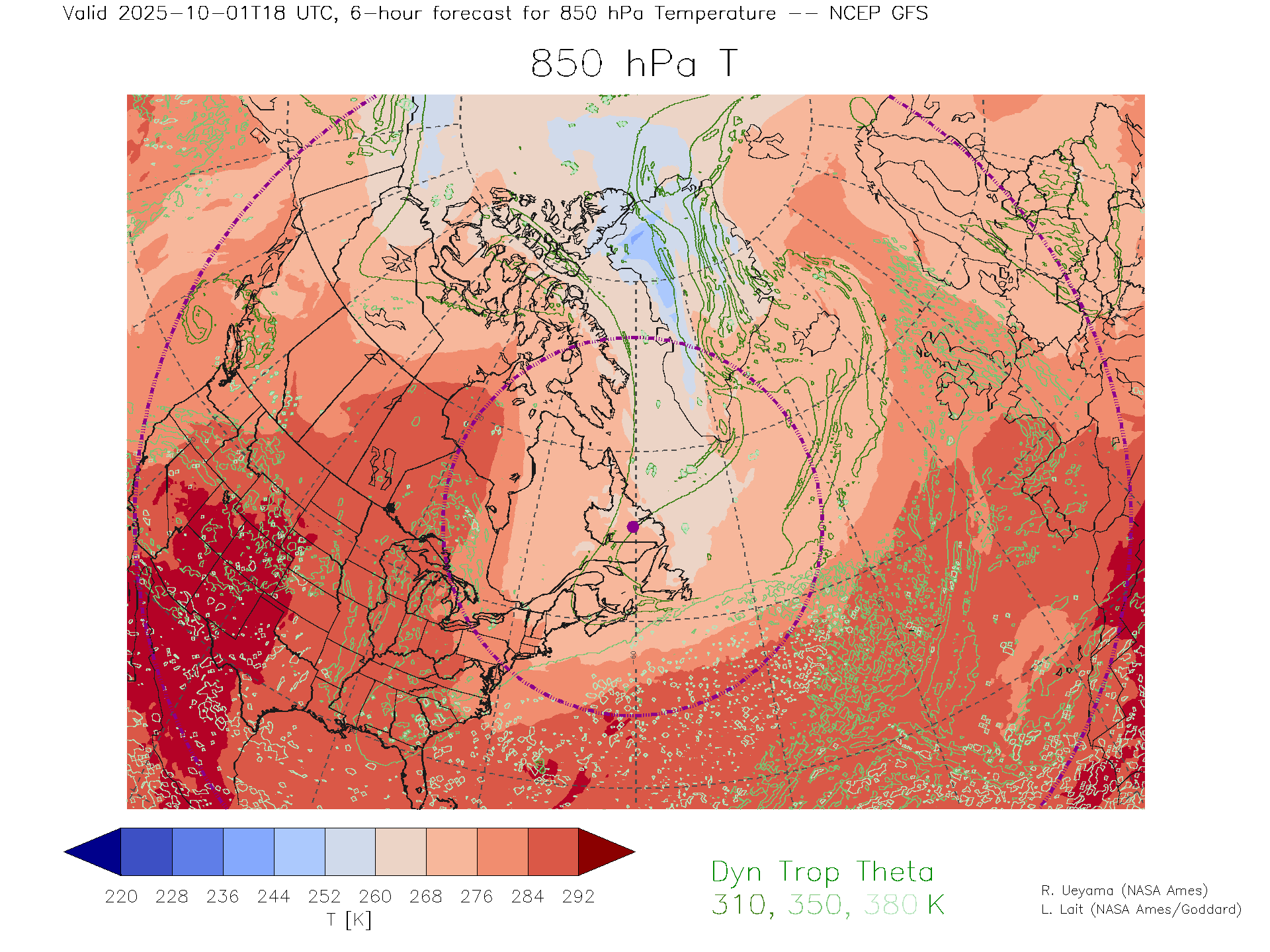 NCEP GFS Forecast 850 hPa Temp.