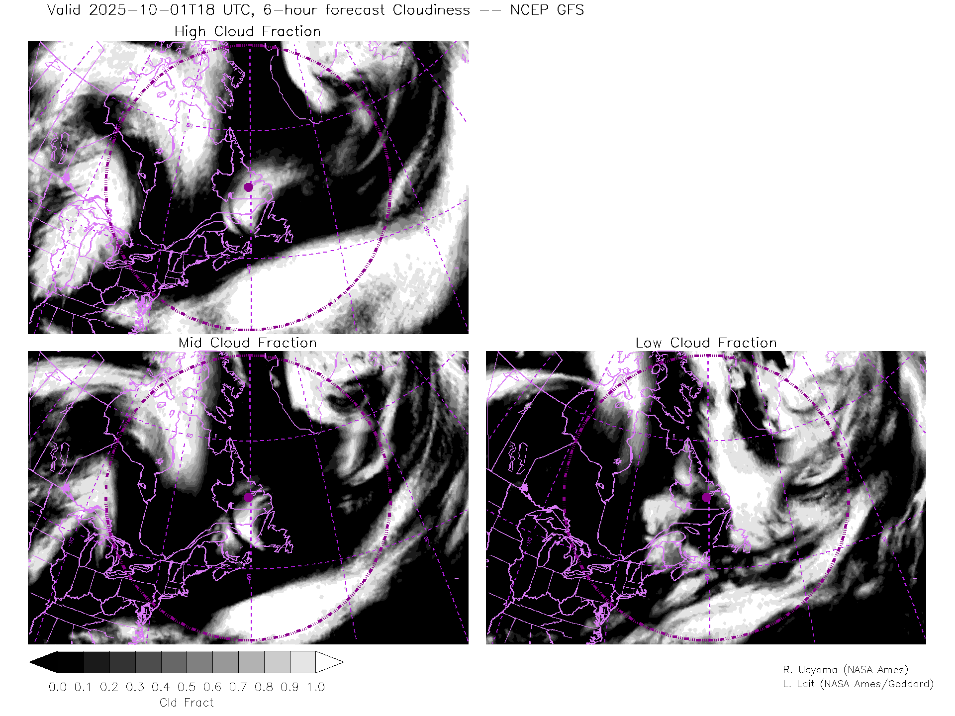 NCEP GFS Forecast Cloud Fraction (High, Mid, Low)
