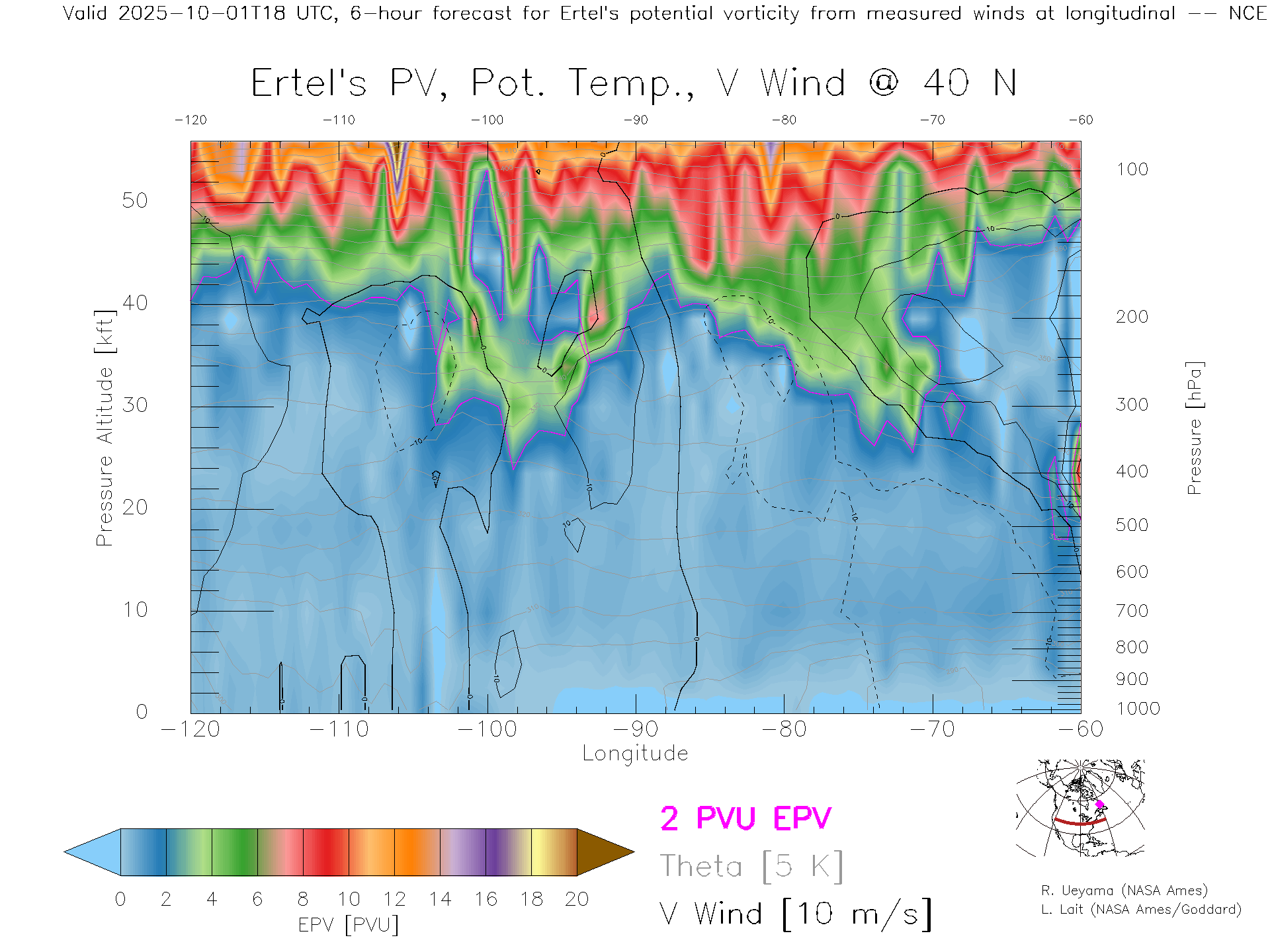 NCEP GFS Forecast PV X-Section (40 N)