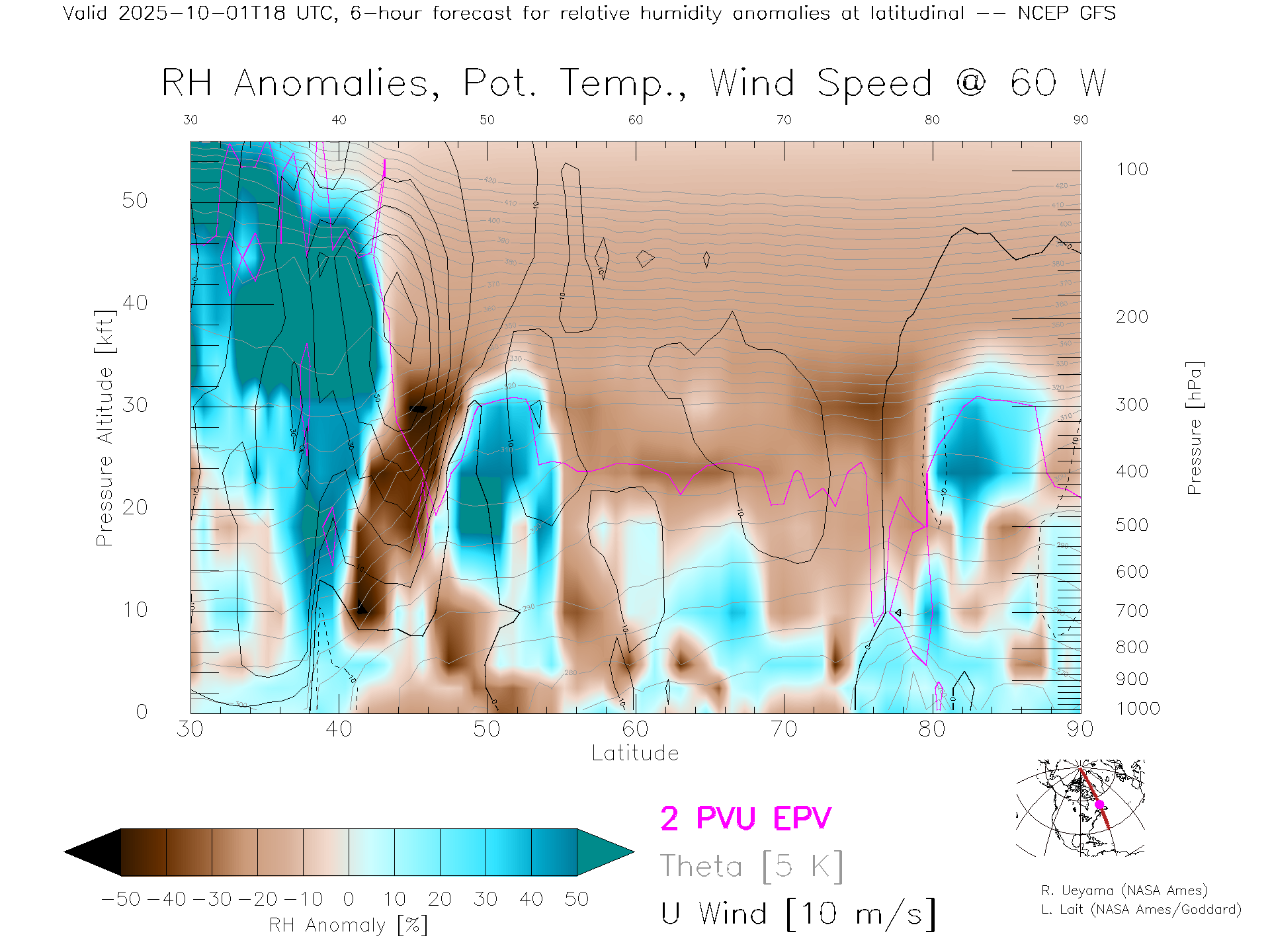 NCEP GFS Forecast Rel. Hum. X-Section (60 W)