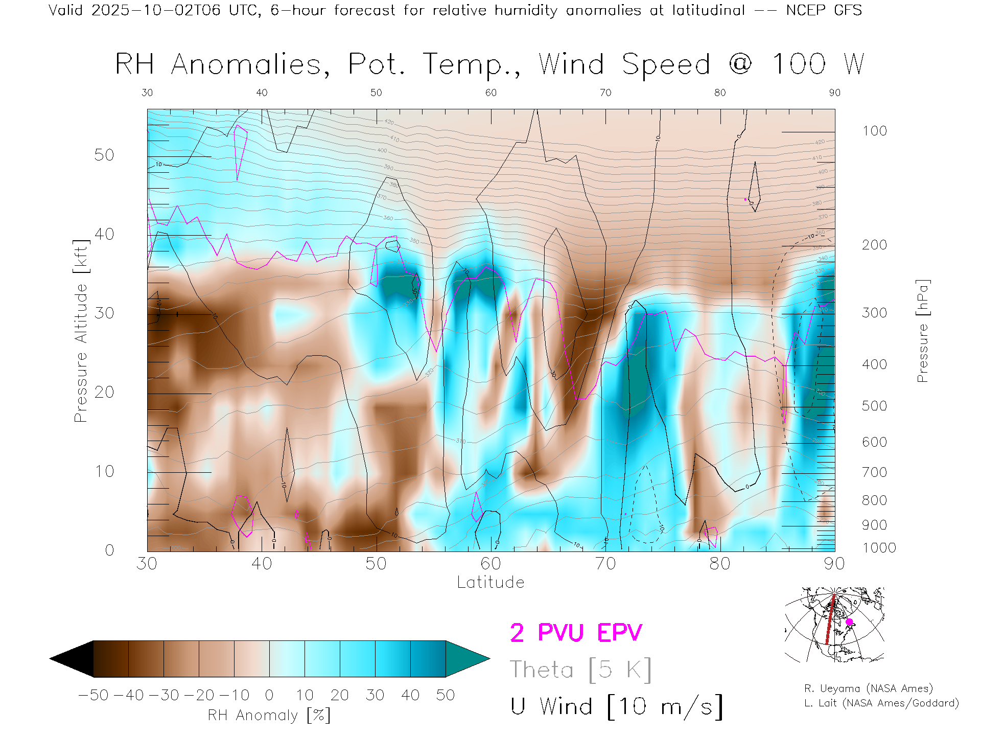 NCEP GFS Forecast Rel. Hum. X-Section (100 W)