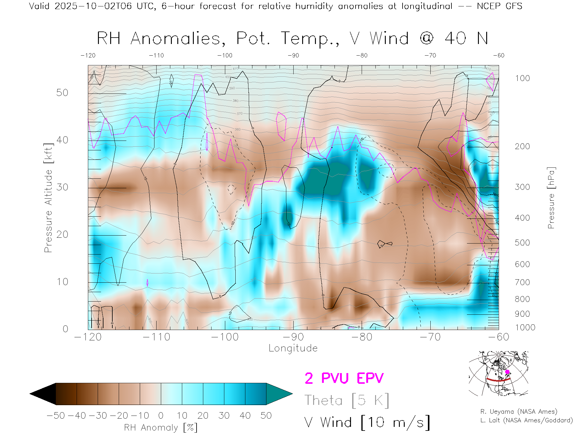 NCEP GFS Forecast Rel. Hum. X-Section (40 N)